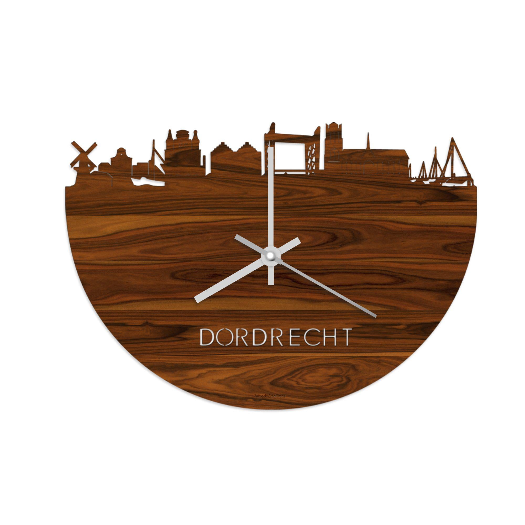 Time flies when you’re having fun! Dat geldt dubbelop als je deze multifunctionele houten wandklok van WoodWideCities in huis haalt. Deze klok met afbeelding van de skyline van Dordrecht houdt je bij de tijd, maar neemt je ook mee terug naar de stad waar je bent geboren of waar je hebt gestudeerd. Een mooie herinnering, elke keer als je kijkt hoe laat het is! Of wat dacht je van een afscheidscadeau, een tijdloos geschenk voor moeder- of vaderdag en andere mijlpalen zoals trouwerijen, het behalen van diploma’s en het openen van een nieuw kantoor of bedrijf, een spetterende binnenkomer voor je kind die gaat studeren in een andere stad of een ideaal cadeau voor de housewarming van kennissen en vrienden.