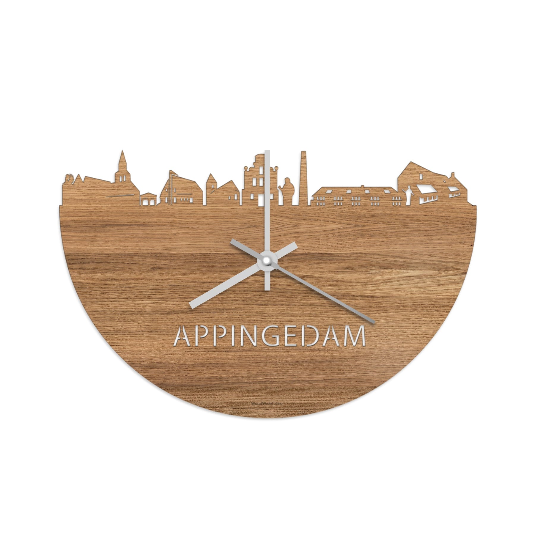 Time flies when you’re having fun! Dat geldt dubbelop als je deze multifunctionele houten wandklok van WoodWideCities in huis haalt. Deze klok met afbeelding van de skyline van Appingedam houdt je bij de tijd, maar neemt je ook mee terug naar de stad waar je bent geboren of waar je hebt gestudeerd. Een mooie herinnering, elke keer als je kijkt hoe laat het is! Of wat dacht je van een afscheidscadeau, een tijdloos geschenk voor moeder- of vaderdag en andere mijlpalen zoals trouwerijen, het behalen van diploma’s en het openen van een nieuw kantoor of bedrijf, een spetterende binnenkomer voor je kind die gaat studeren in een andere stad of een ideaal cadeau voor de housewarming van kennissen en vrienden.
