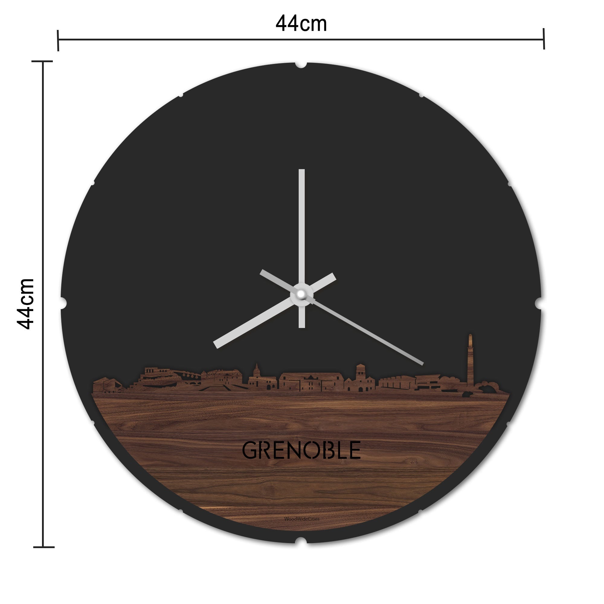 Skyline Klok Rond Grenoble Palissander houten cadeau decoratie relatiegeschenk van WoodWideCities