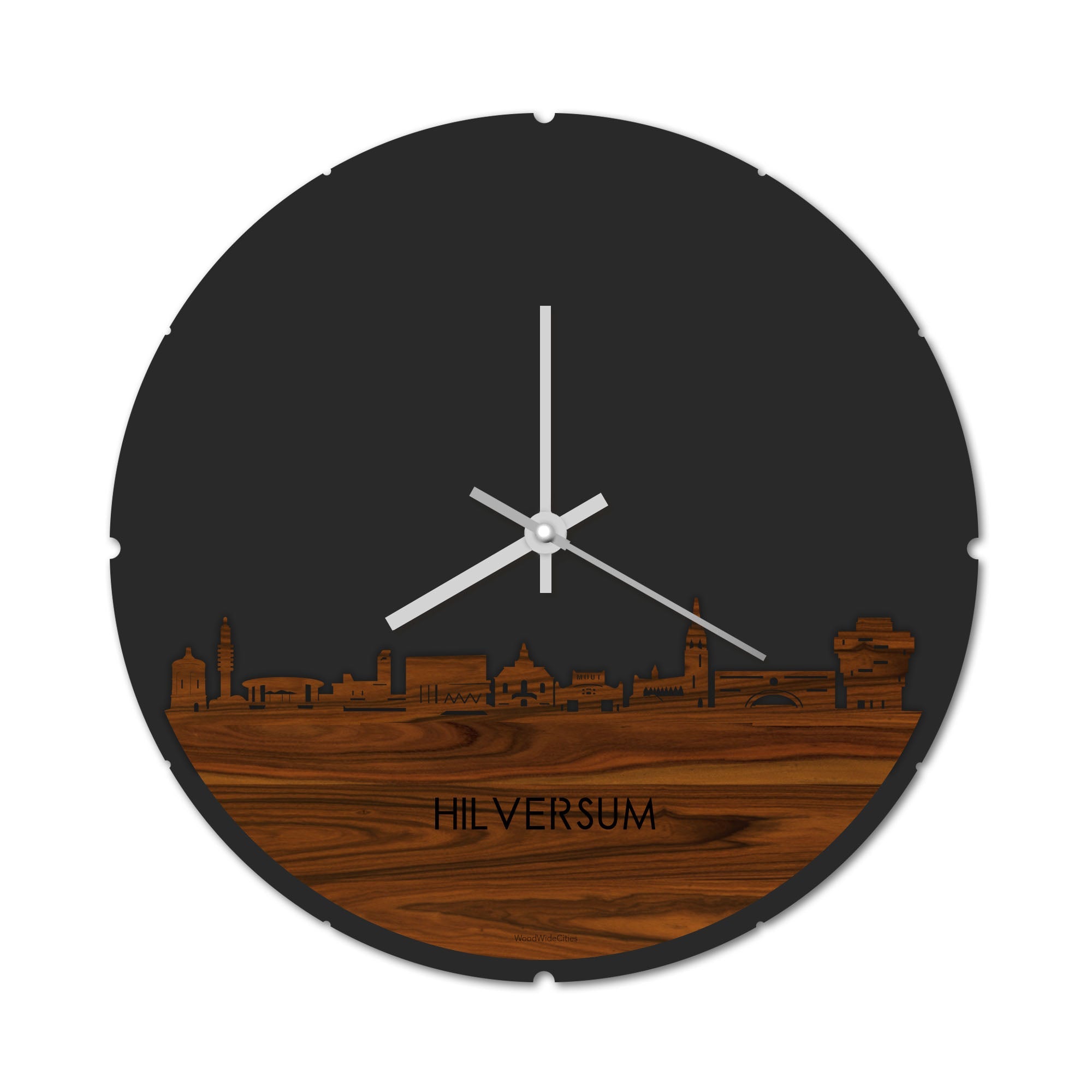 Skyline Klok Rond Hilversum Palissander Palissander houten cadeau decoratie relatiegeschenk van WoodWideCities