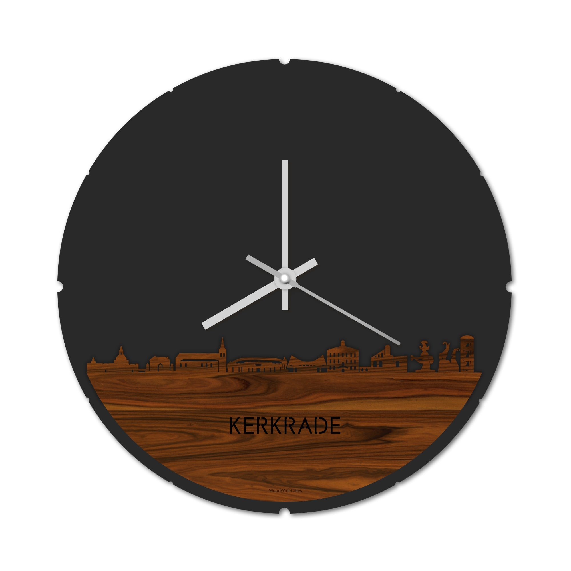 Skyline Klok Rond Kerkrade Palissander houten cadeau decoratie relatiegeschenk van WoodWideCities