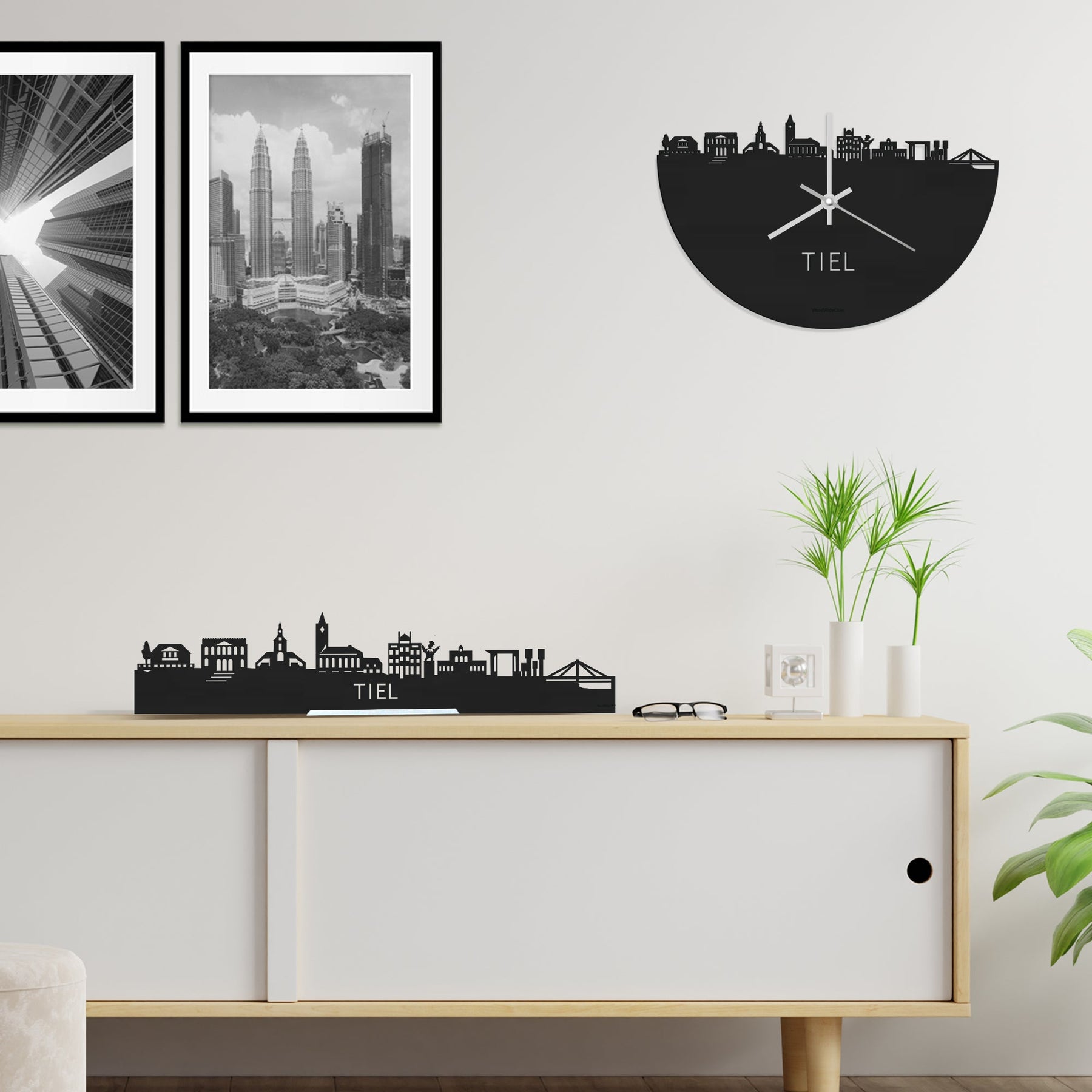 Je herkent ze vast allemaal; de hoogtepunten van deze geliefde plaats: Bellevue, Gerechtsgebouw Tiel, Waterpoort, Maartenskerk, Jamfabriek (de Betuwe), Flipje, Station Tiel, Prins Bernhard sluis Tiel, Willem-Alexanderbrug Tiel. De skyline is gemaakt in samenwerking met Tiel ondernemers en het silhouet komt uit het creatieve brein van een architect, dus alle verhoudingen kloppen.