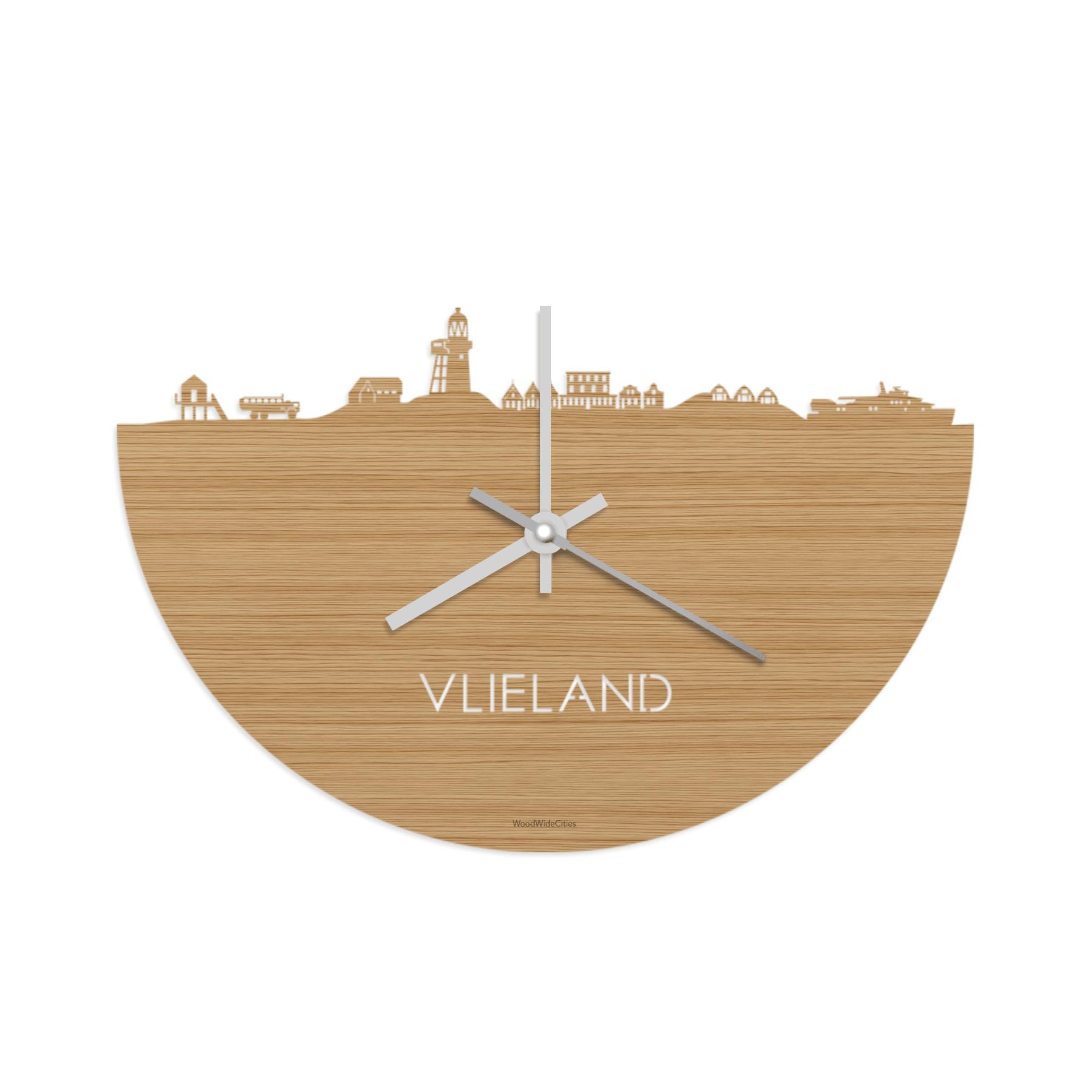 Time flies when you’re having fun! Dat geldt dubbelop als je deze multifunctionele houten wandklok van WoodWideCities in huis haalt. Deze klok met afbeelding van de skyline van Vlieland houdt je bij de tijd, maar neemt je ook mee terug naar de stad waar je bent geboren of waar je hebt gestudeerd. Een mooie herinnering, elke keer als je kijkt hoe laat het is! Of wat dacht je van een afscheidscadeau, een tijdloos geschenk voor moeder- of vaderdag en andere mijlpalen zoals trouwerijen, het behalen van diploma’s en het openen van een nieuw kantoor of bedrijf, een spetterende binnenkomer voor je kind die gaat studeren in een andere stad of een ideaal cadeau voor de housewarming van kennissen en vrienden.