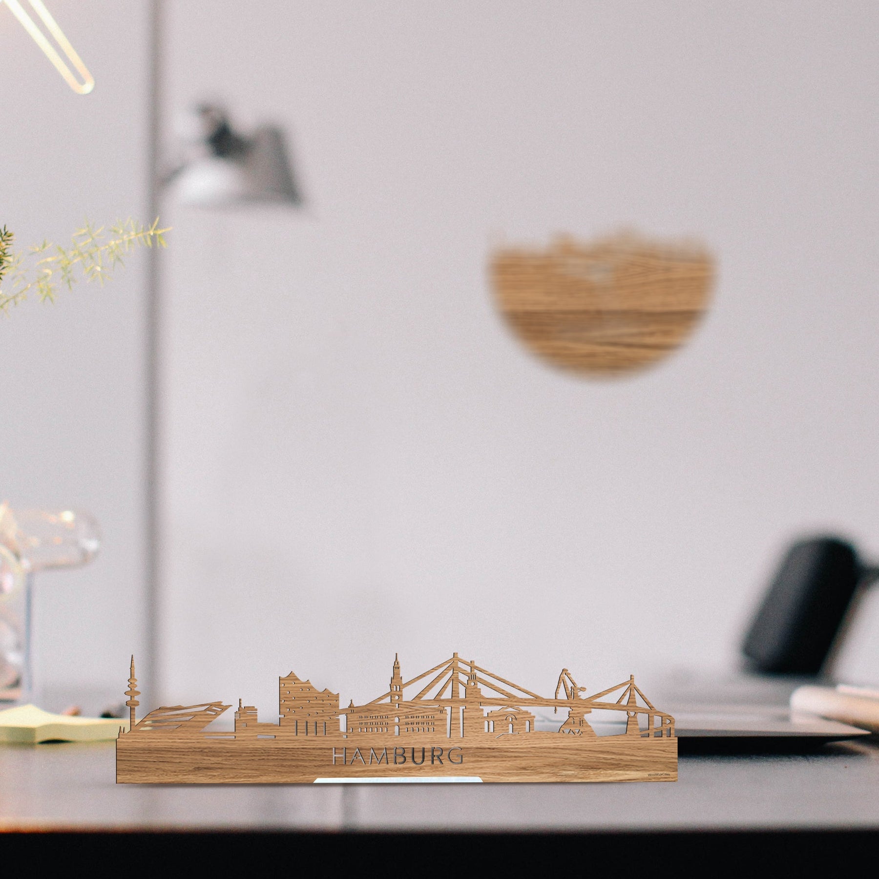 Standing Skyline Hamburg Eiken houten cadeau decoratie relatiegeschenk van WoodWideCities