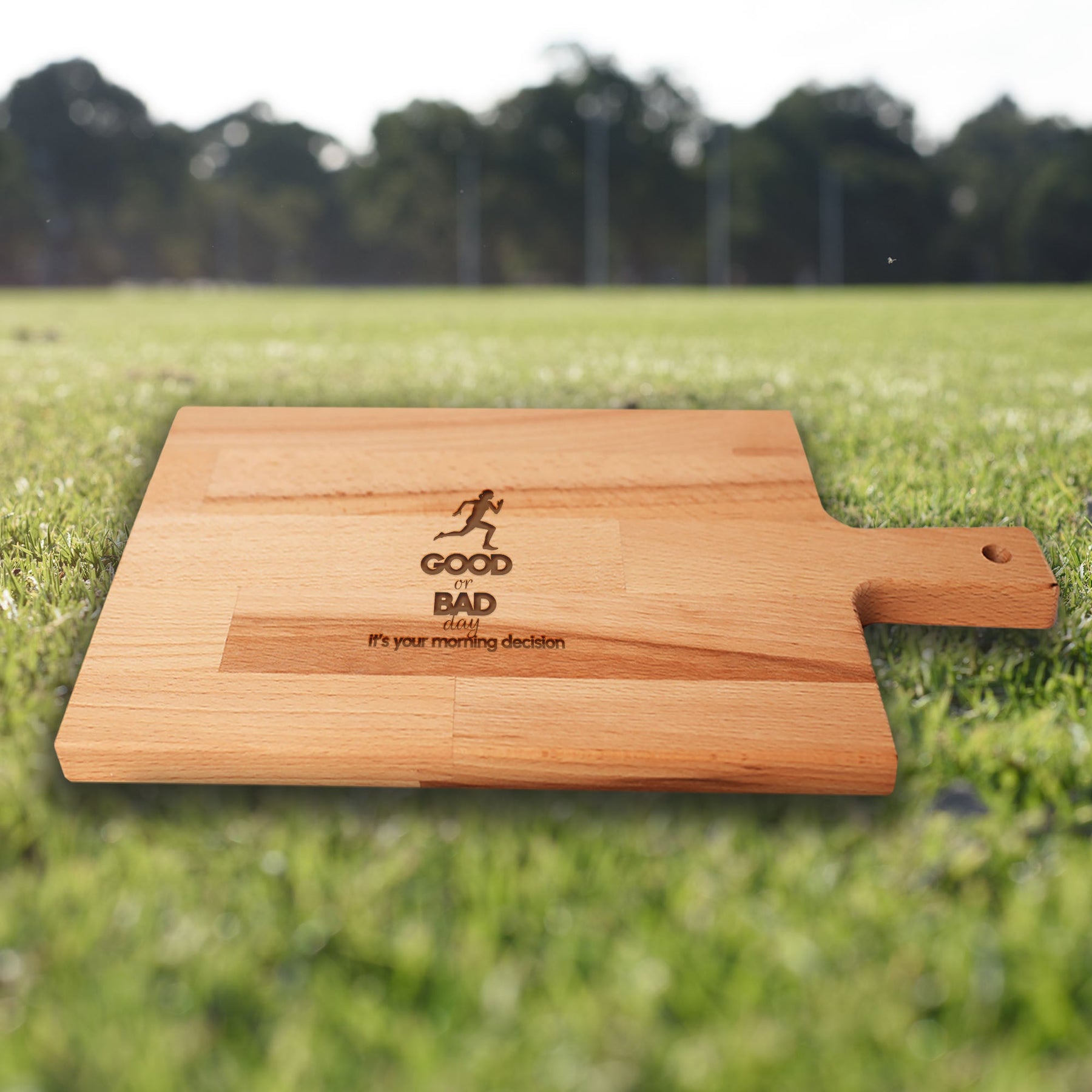 Serveerplank Hardlopen (Vrouw) Good or Bad Day Your Morning Decision houten cadeau decoratie relatiegeschenk van WoodWideCities