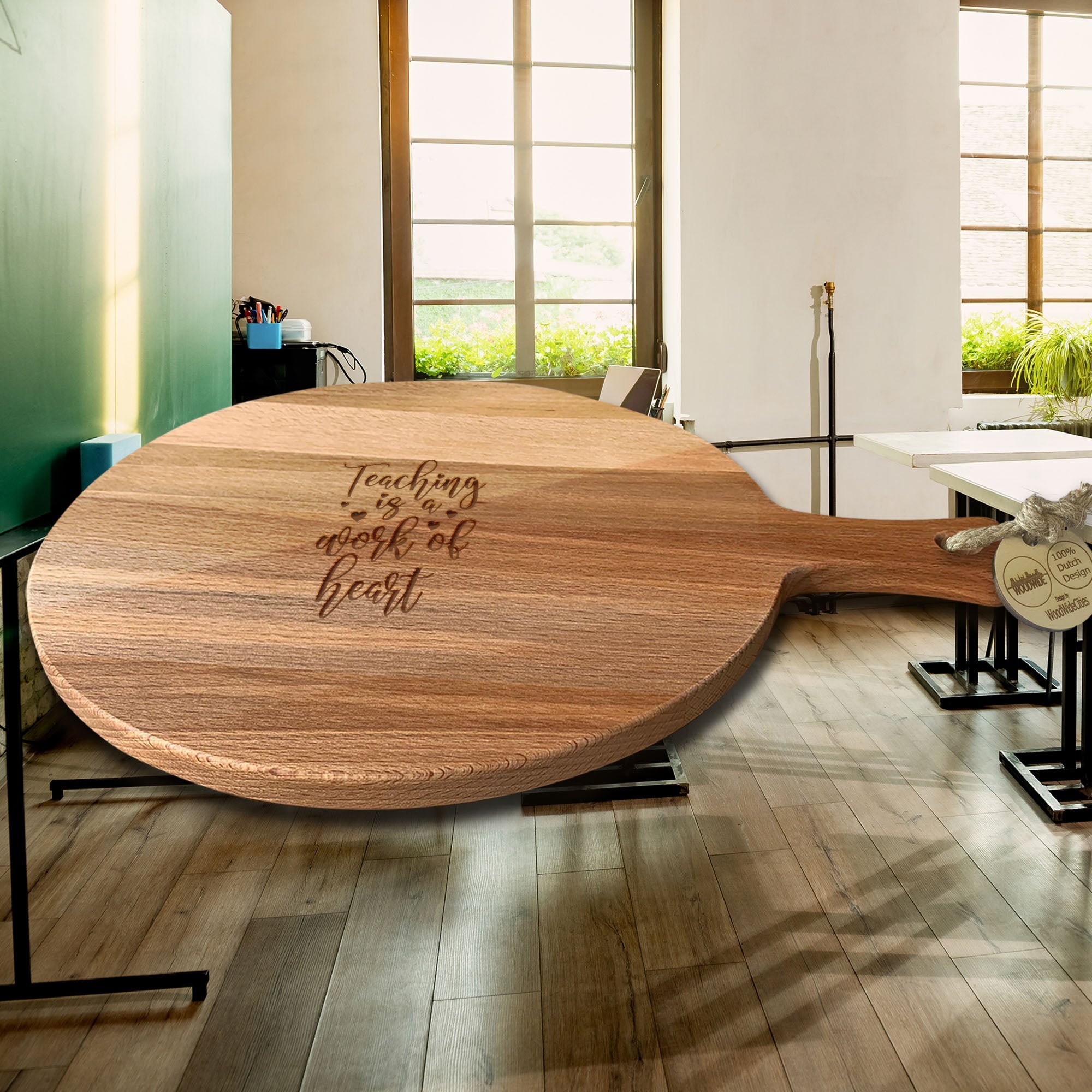 Serveerplank Rond Leraar Teach Is a Work of Heart houten cadeau decoratie relatiegeschenk van WoodWideCities