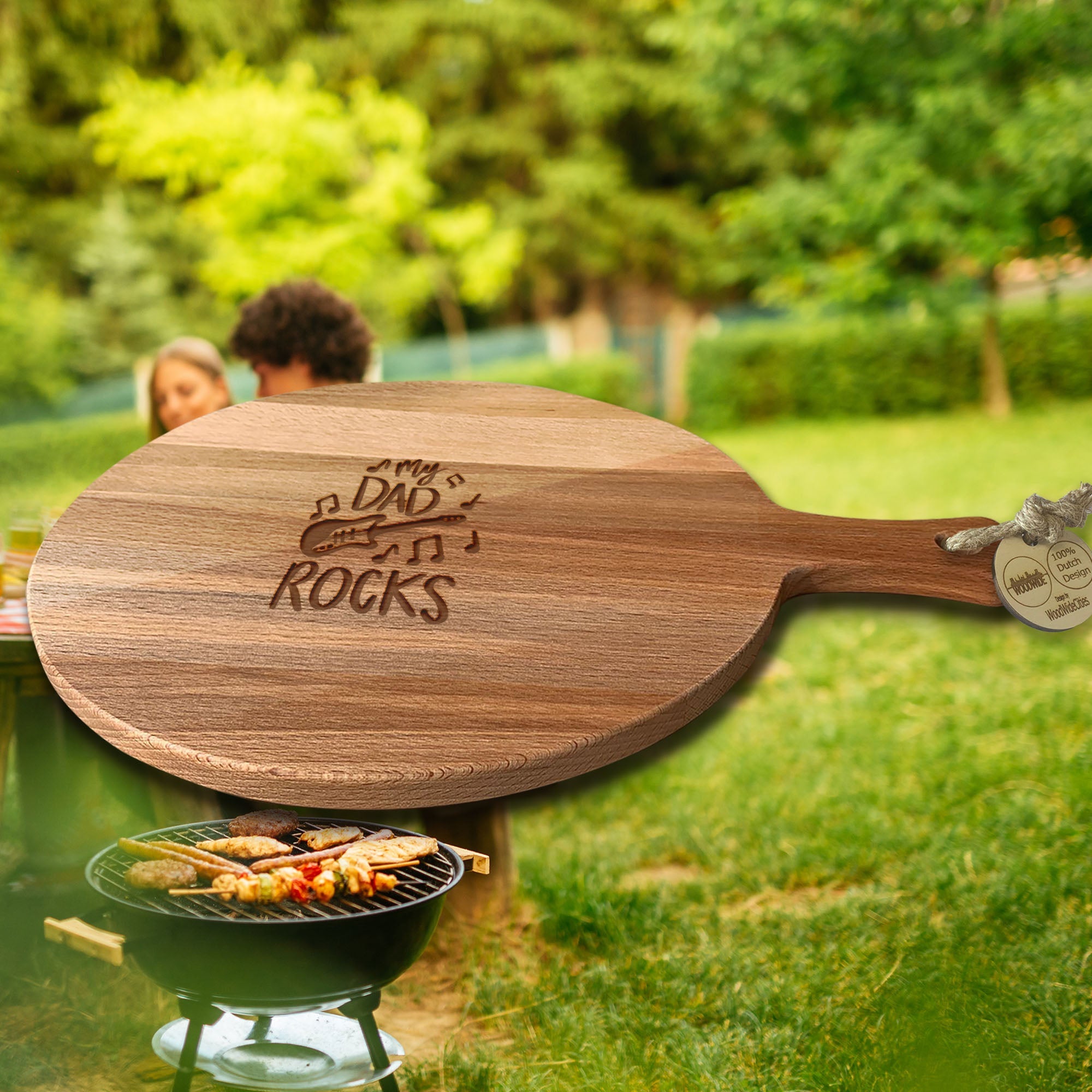 Serveerplank Rond Vaderdag Dad Rocks houten cadeau decoratie relatiegeschenk van WoodWideCities