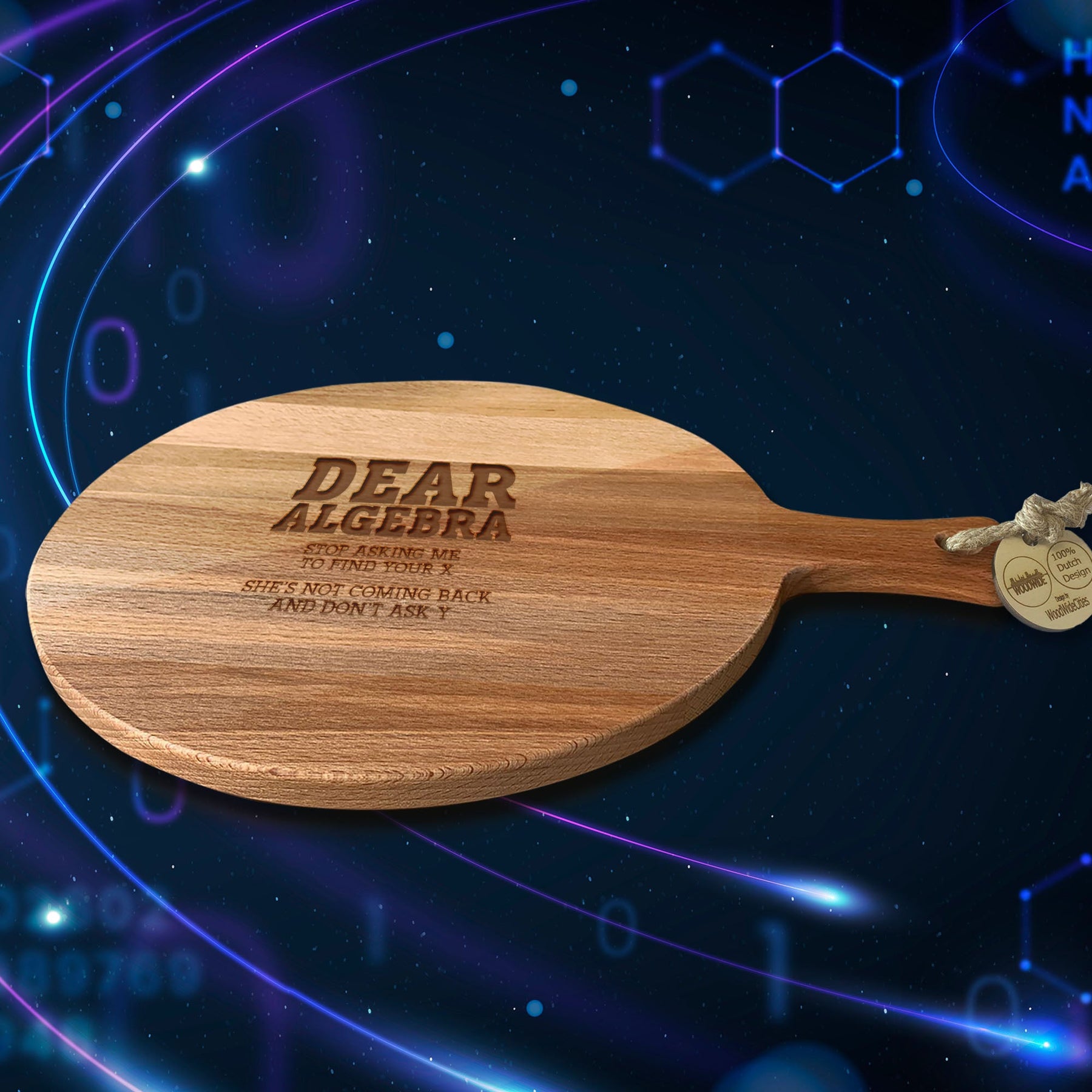 Op zoek naar een origineel cadeau voor een wiskunde liefhebber? Zoek niet verder dan deze prachtige serveerplank met de gravure "Dear Algebra". De plank is gemaakt van hoogwaardig hout en de gravure is met precisie uitgesneden, wat resulteert in een prachtig afgewerkt product. Of het nu wordt gebruikt als decoratief stuk of als functionele serveerplank, dit cadeau zal zeker indruk maken op elke wiskundige fan.