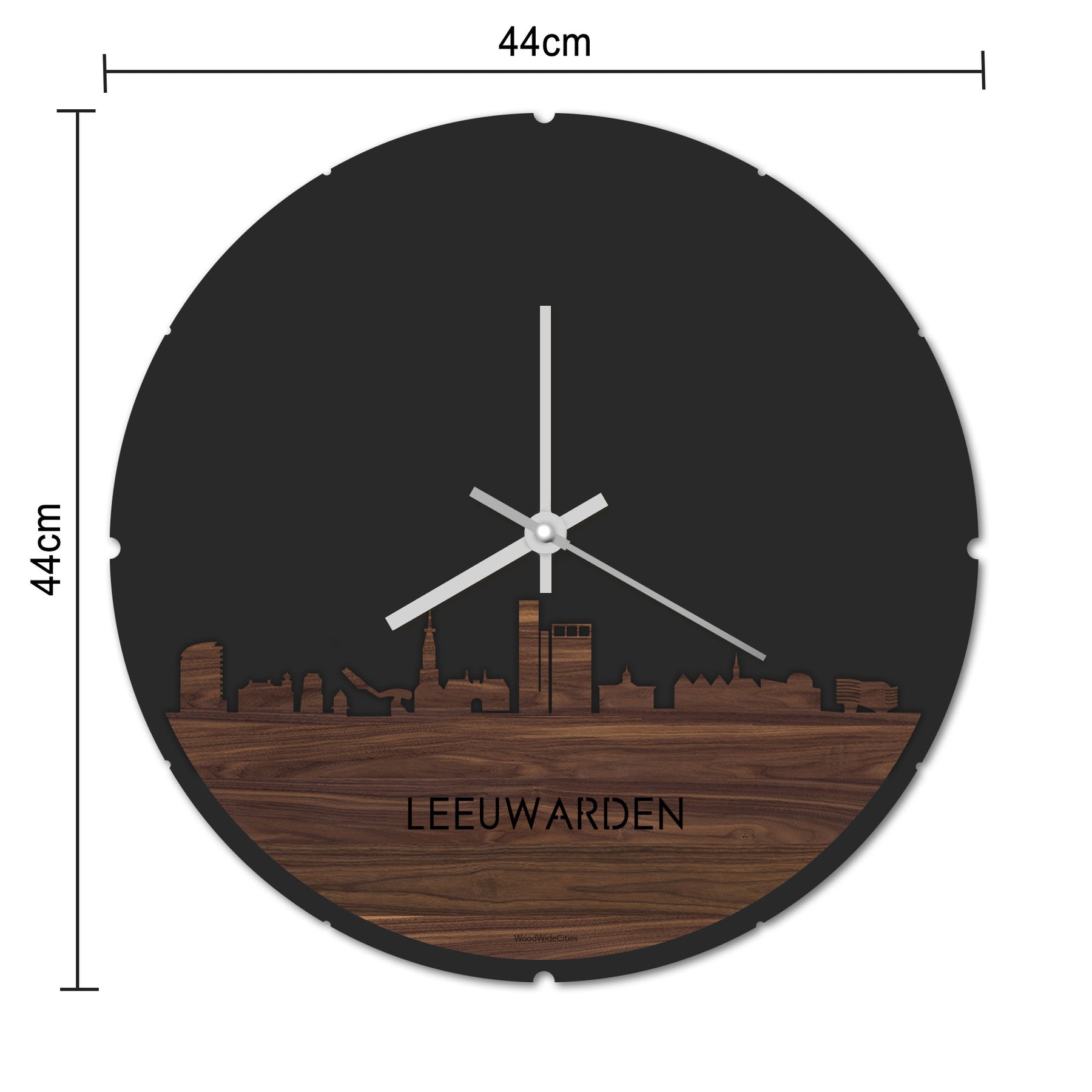 Skyline Klok Rond Leeuwarden Palissander houten cadeau decoratie relatiegeschenk van WoodWideCities