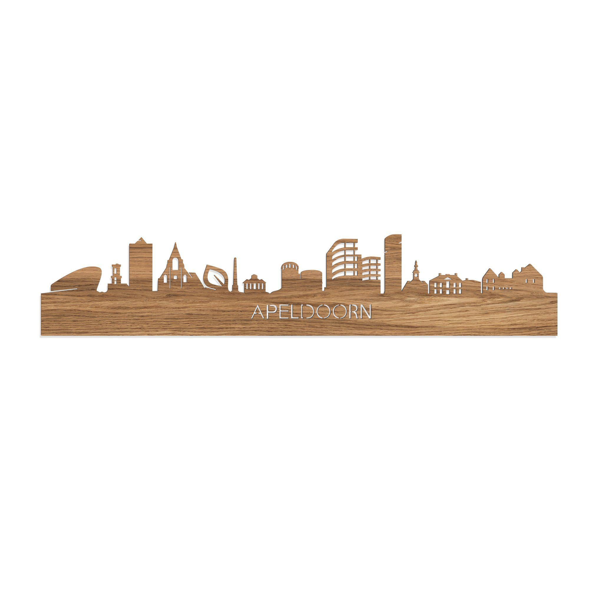 Je herkent ze vast allemaal; de hoogtepunten van deze geliefde plaats: Omnisport, Apenheul, Julianatoren, Grote Kerk, Ecofactorij, De Naald, Oranjepark monument, Stadshuis, New York appartementen, Belastingdienst, Maria Kerk, Het oude Loo. De skyline is gemaakt in samenwerking met Apeldoorn ondernemers en het silhouet komt uit het creatieve brein van een architect, dus alle verhoudingen kloppen.
