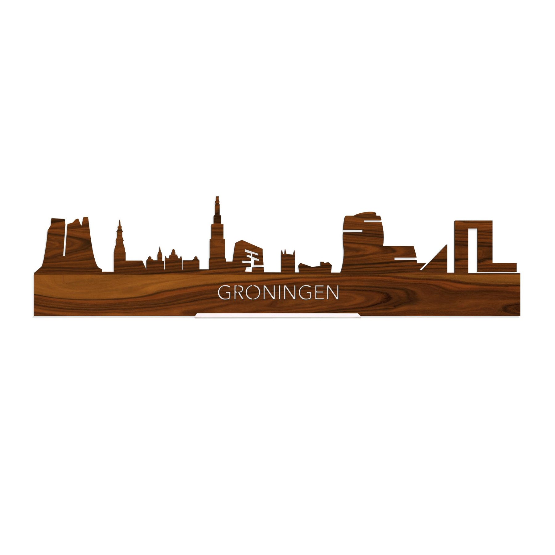 De skyline van Groningen is verkrijgbaar in verschillende soorten hout: eiken, noten, zwart MDF en palissander. De houtsoorten zijn duurzaam, ecologisch en gekeurd. Dat vinden wij belangrijk! Bij het produceren van houten decoraties komen geen schadelijke stoffen vrij, hout gaat langer mee en het is biologisch afbreekbaar. Daarnaast is de houten afwerking bij elke skyline anders. Dat maakt jouw skyline uniek!