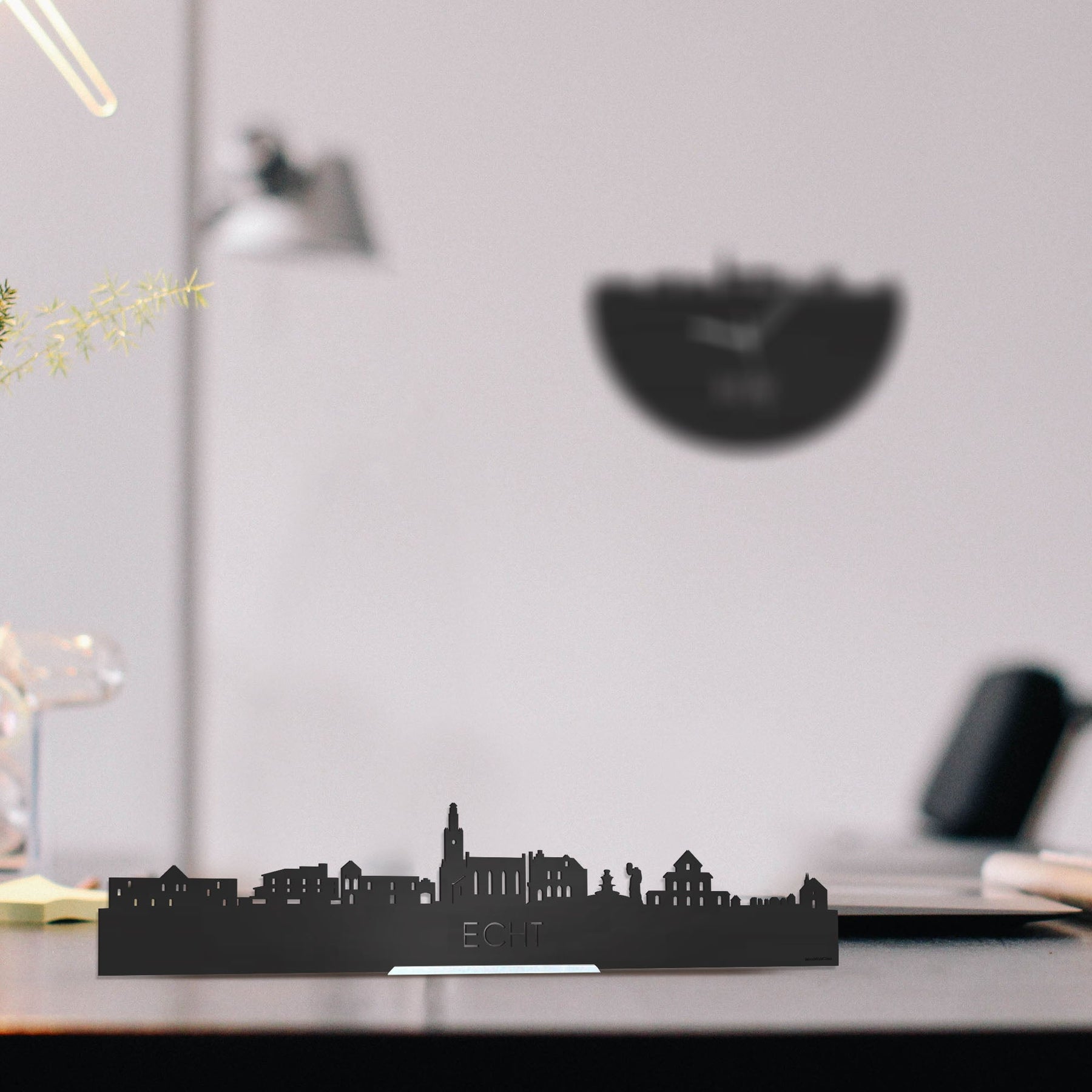 Je herkent ze vast allemaal; de hoogtepunten van deze geliefde plaats: Pannenfabriek de Valk, Klooster van de Zusters Ursulinen, Karmelietenklooster, Landricuskerk, Voormalig raadhuis, Fontein op de Plats, Juffrouw zonder kop, Treinstation, Kapel van Schilberg . De skyline is gemaakt in samenwerking met inwoners uit Echt en het silhouet komt uit het creatieve brein van onze eigen kunstenares. Met liefde gemaakt!