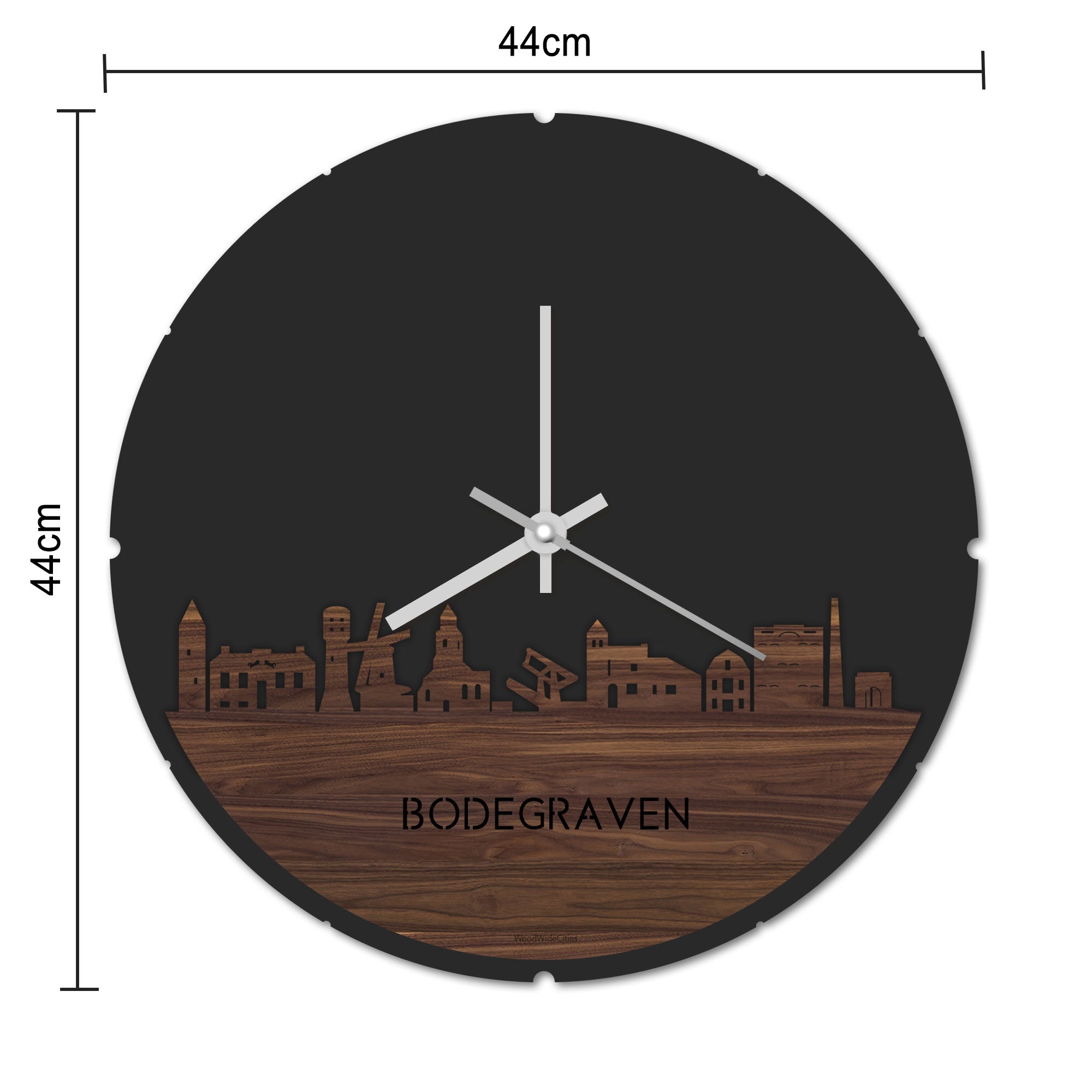 Blijf bij de tijd met de ronde skyline wandklok Dat geldt dubbelop als je deze multifunctionele houten Skyline Klok Rond Bodegraven Palissander in huis haalt. Deze klok met de skyline van Bodegraven houdt je bij de tijd, maar neemt je ook mee terug naar de stad waar je bent geboren of waar je hebt gestudeerd. Een mooie herinnering, elke keer als je kijkt hoe laat het is! Of wat dacht je van een afscheidscadeau, een tijdloos geschenk voor moeder- of vaderdag en andere mijlpalen zoals trouwerijen, het behalen van diploma’s en het openen van een nieuw kantoor of bedrijf, een spetterende binnenkomer voor je kind die gaat studeren in een andere stad of een ideaal cadeau voor de housewarming van kennissen en vrienden.