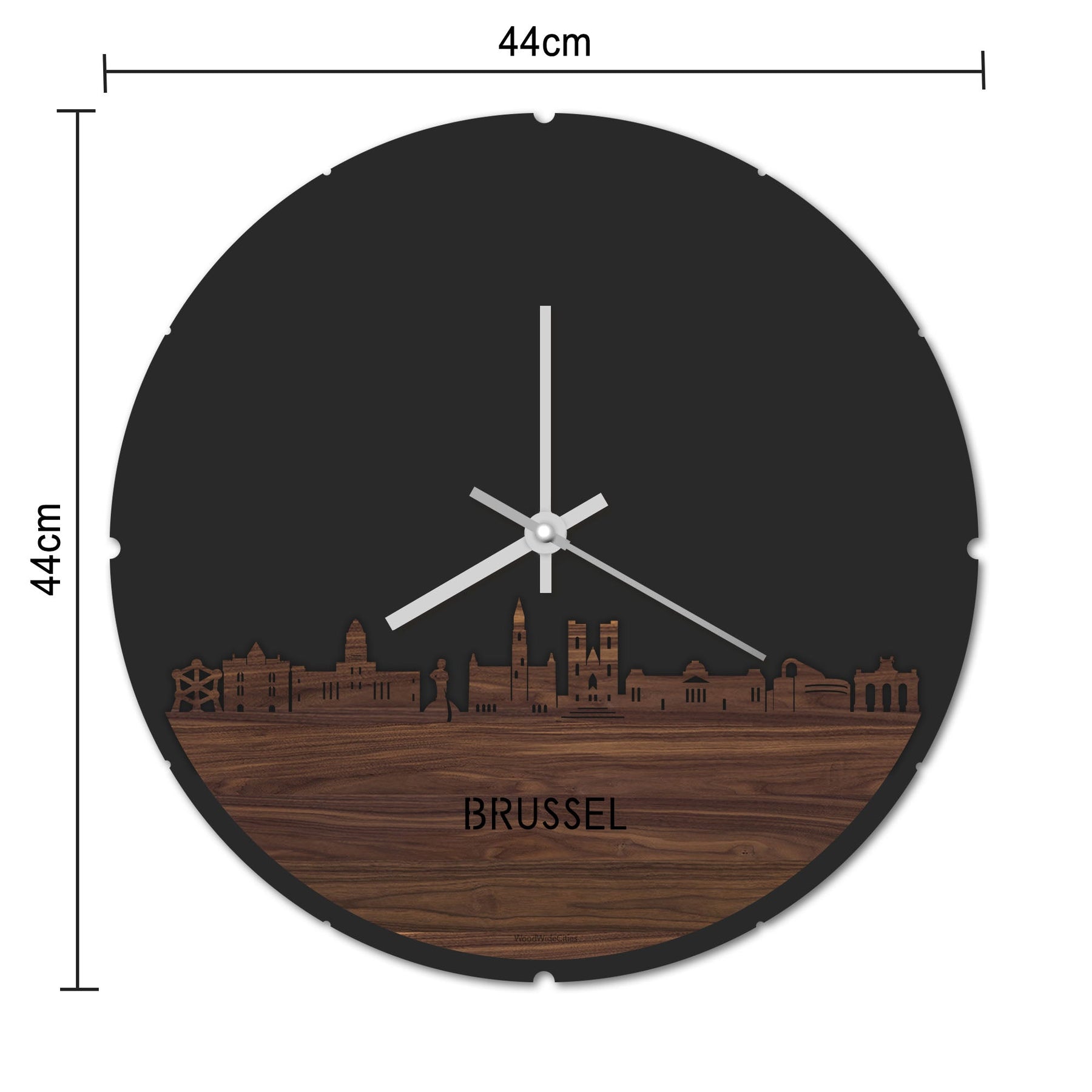 Blijf bij de tijd met de ronde skyline wandklok Dat geldt dubbelop als je deze multifunctionele houten wandklok van WoodWideCities in huis haalt. Deze klok met afbeelding van de skyline van Brussel houdt je bij de tijd, maar neemt je ook mee terug naar de stad waar je bent geboren of waar je hebt gestudeerd. Een mooie herinnering, elke keer als je kijkt hoe laat het is! Of wat dacht je van een afscheidscadeau, een tijdloos geschenk voor moeder- of vaderdag en andere mijlpalen zoals trouwerijen, het behalen van diploma’s en het openen van een nieuw kantoor of bedrijf, een spetterende binnenkomer voor je kind die gaat studeren in een andere stad of een ideaal cadeau voor de housewarming van kennissen en vrienden.