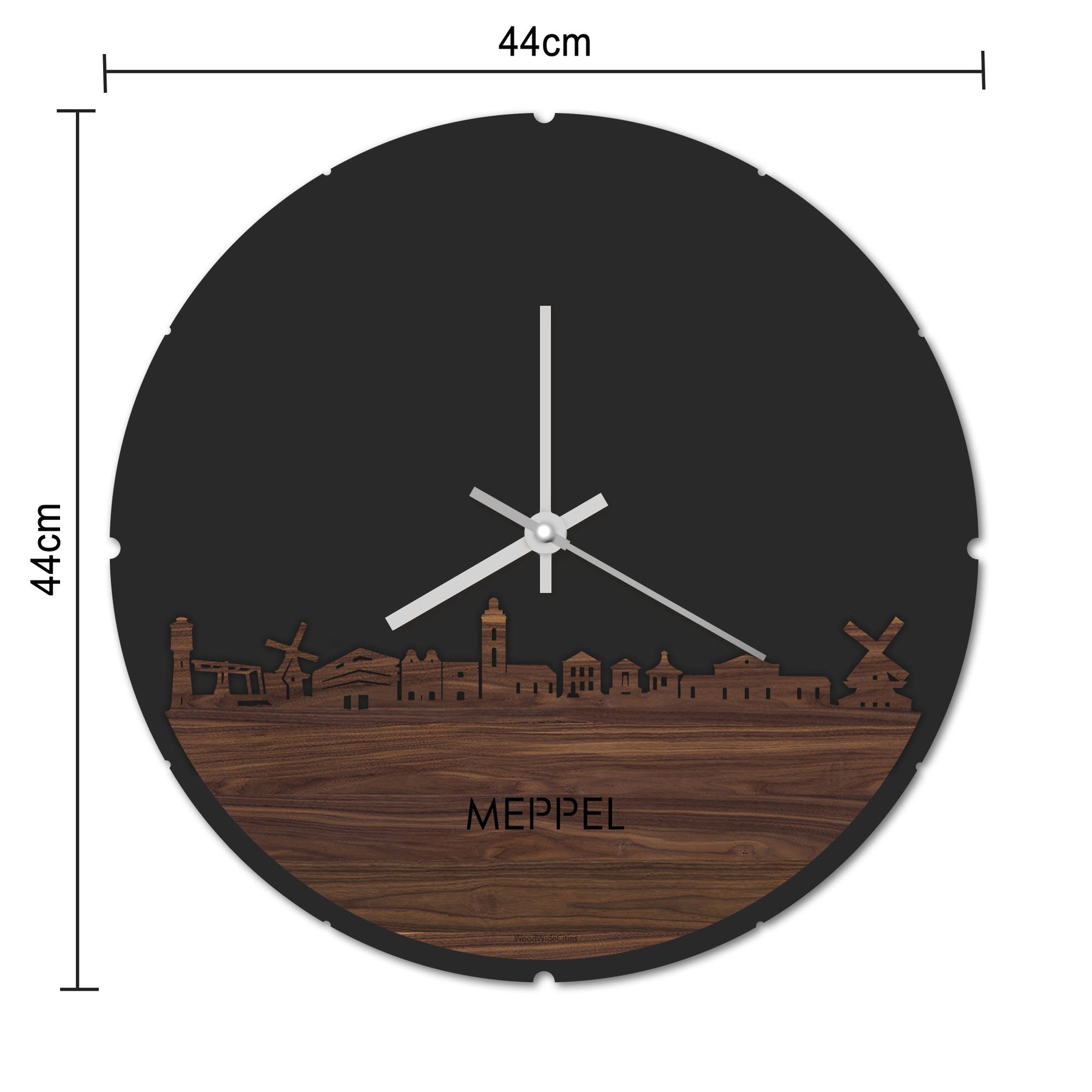 Blijf bij de tijd met de ronde skyline wandklok Dat geldt dubbelop als je deze multifunctionele houten wandklok van WoodWideCities in huis haalt. Deze klok met afbeelding van de skyline van Meppel houdt je bij de tijd, maar neemt je ook mee terug naar de stad waar je bent geboren of waar je hebt gestudeerd. Een mooie herinnering, elke keer als je kijkt hoe laat het is! Of wat dacht je van een afscheidscadeau, een tijdloos geschenk voor moeder- of vaderdag en andere mijlpalen zoals trouwerijen, het behalen van diploma’s en het openen van een nieuw kantoor of bedrijf, een spetterende binnenkomer voor je kind die gaat studeren in een andere stad of een ideaal cadeau voor de housewarming van kennissen en vrienden.