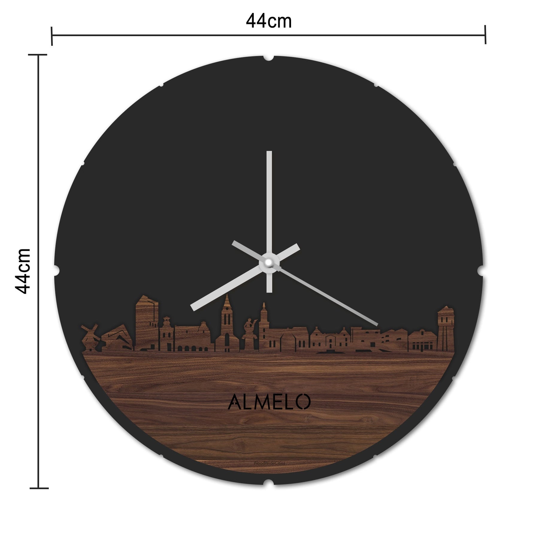 Blijf bij de tijd met de ronde skyline wandklok Dat geldt zeker als je de ronde skyline wandklok gemaakt van 100% gerecycled kunststof (plastic) in huis haalt. Deze skyline klok van Almelo houdt je bij de tijd, maar neemt je ook mee terug naar de stad waar je bent opgegroeid of waar je hebt gestudeerd. Een mooie herinnering, elke keer als je kijkt hoe laat het is! Of wat dacht je van een afscheidscadeau, een tijdloos geschenk voor Moeder- of Vaderdag en andere mijlpalen zoals jubilea, trouwerijen, het behalen van diploma’s, het openen van een nieuw kantoor of gewoon voor jezelf. Een bijzondere verrassing voor je kind die gaat studeren in een andere stad of een ideaal cadeau voor de housewarming van kennissen en vrienden.