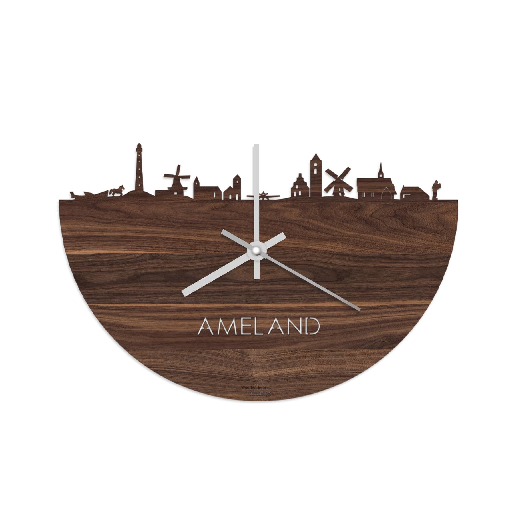 Time flies when you’re having fun! Dat geldt dubbelop als je deze multifunctionele houten wandklok van WoodWideCities in huis haalt. Deze klok met afbeelding van de skyline van Ameland houdt je bij de tijd, maar neemt je ook mee terug naar de stad waar je bent geboren of waar je hebt gestudeerd. Een mooie herinnering, elke keer als je kijkt hoe laat het is! Of wat dacht je van een afscheidscadeau, een tijdloos geschenk voor moeder- of vaderdag en andere mijlpalen zoals trouwerijen, het behalen van diploma’s en het openen van een nieuw kantoor of bedrijf, een spetterende binnenkomer voor je kind die gaat studeren in een andere stad of een ideaal cadeau voor de housewarming van kennissen en vrienden.