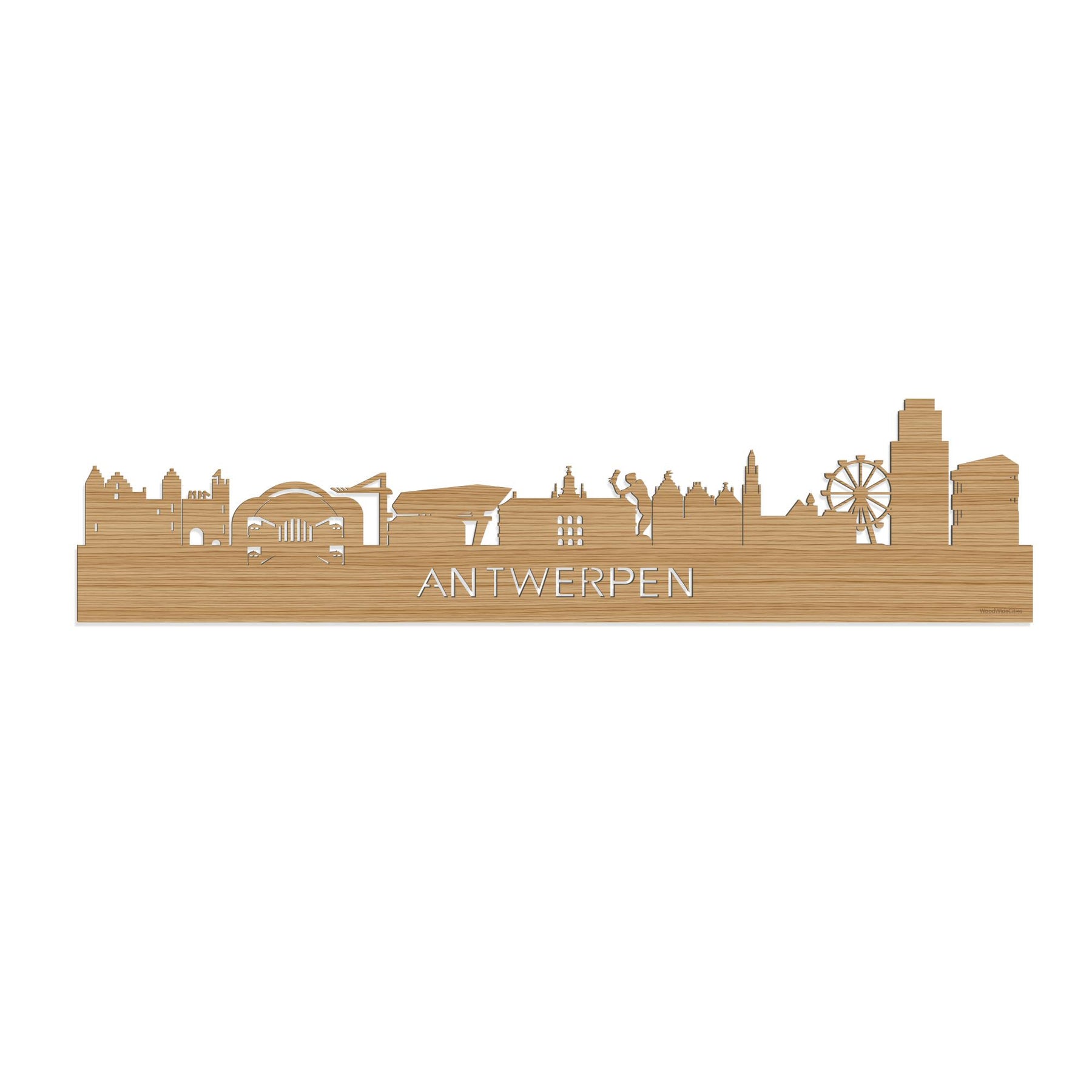 De skyline van Antwerpen is verkrijgbaar in verschillende soorten hout: zwart MDF, bamboe, eiken, noten en palissander. De houtsoorten zijn duurzaam, ecologisch en gekeurd.