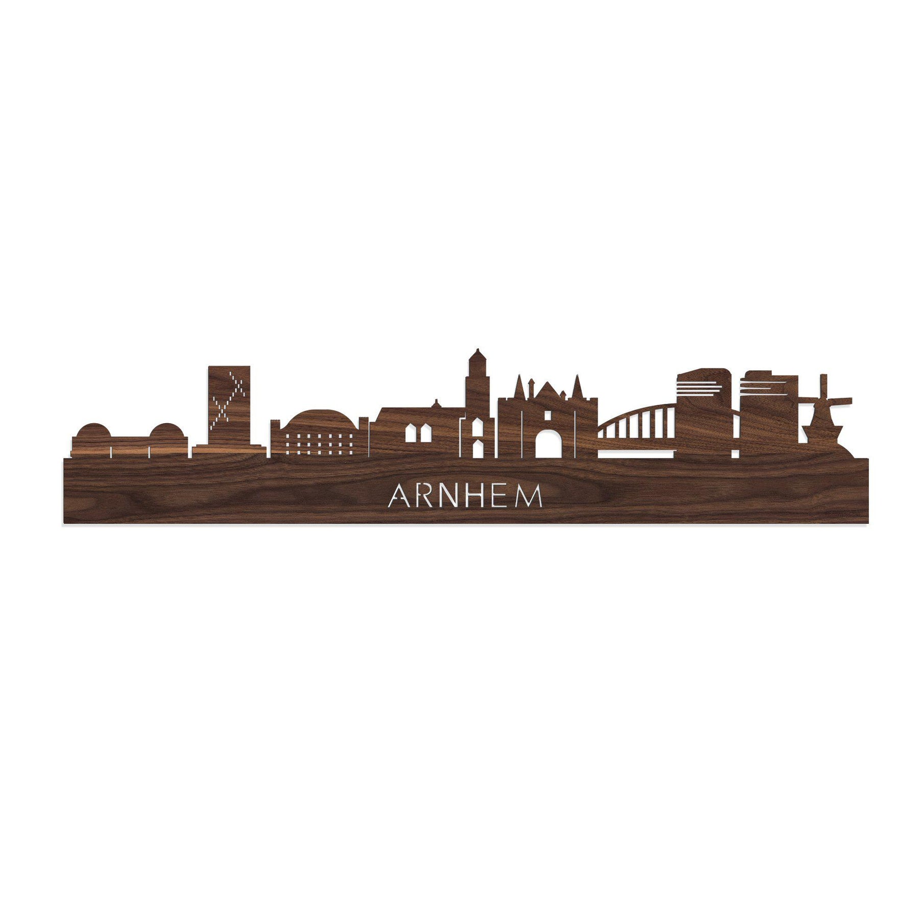 Je herkent ze vast allemaal; de hoogtepunten van deze geliefde plaats: GelreDome, Helix, koepelgevangenis Arnhem, Eusebiuskerk, Sabelspoort, John Frostbrug, Parktoren en Rijntoren en Molen de Kroon. De skyline is gemaakt in samenwerking met Arnhem ondernemers en het silhouet komt uit het creatieve brein van een architect, dus alle verhoudingen kloppen.