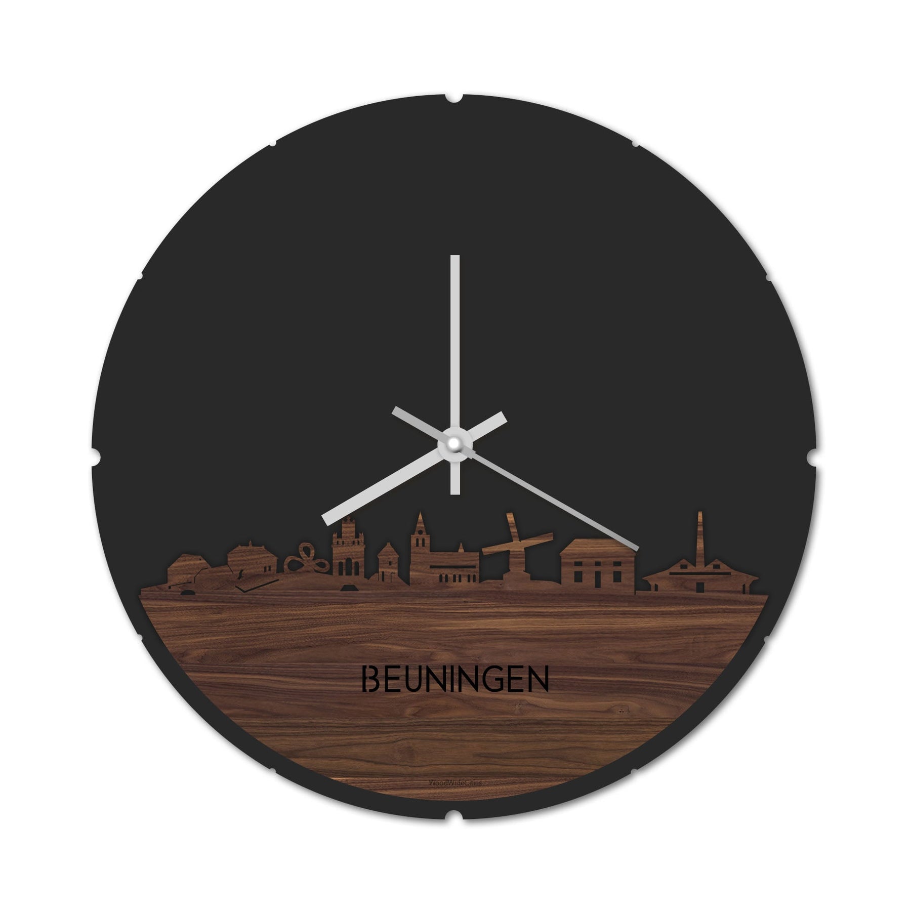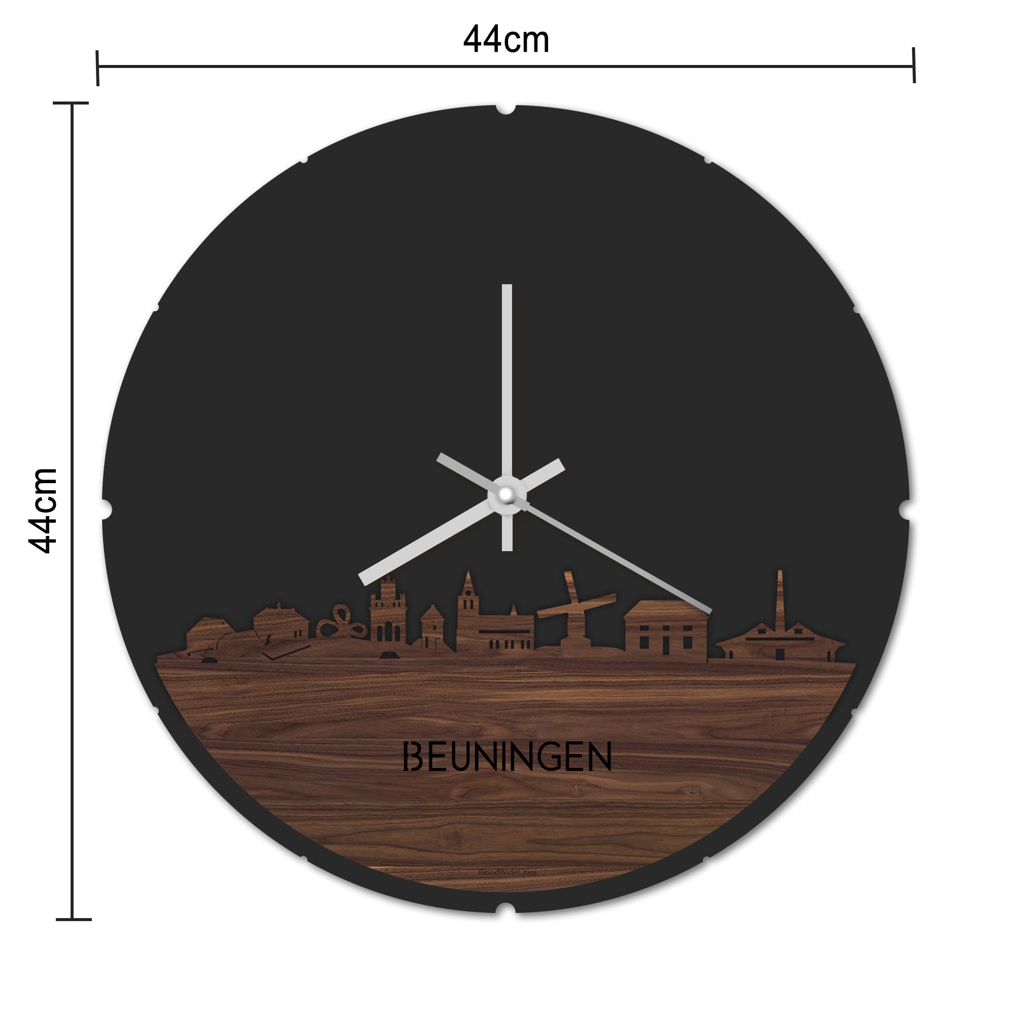 Blijf bij de tijd met de ronde skyline wandklok Dat geldt dubbelop als je deze multifunctionele houten wandklok van WoodWideCities in huis haalt. Deze klok met afbeelding van de skyline van Beuningen houdt je bij de tijd, maar neemt je ook mee terug naar de stad waar je bent geboren of waar je hebt gestudeerd. Een mooie herinnering, elke keer als je kijkt hoe laat het is! Of wat dacht je van een afscheidscadeau, een tijdloos geschenk voor moeder- of vaderdag en andere mijlpalen zoals trouwerijen, het behalen van diploma’s en het openen van een nieuw kantoor of bedrijf, een spetterende binnenkomer voor je kind die gaat studeren in een andere stad of een ideaal cadeau voor de housewarming van kennissen en vrienden.