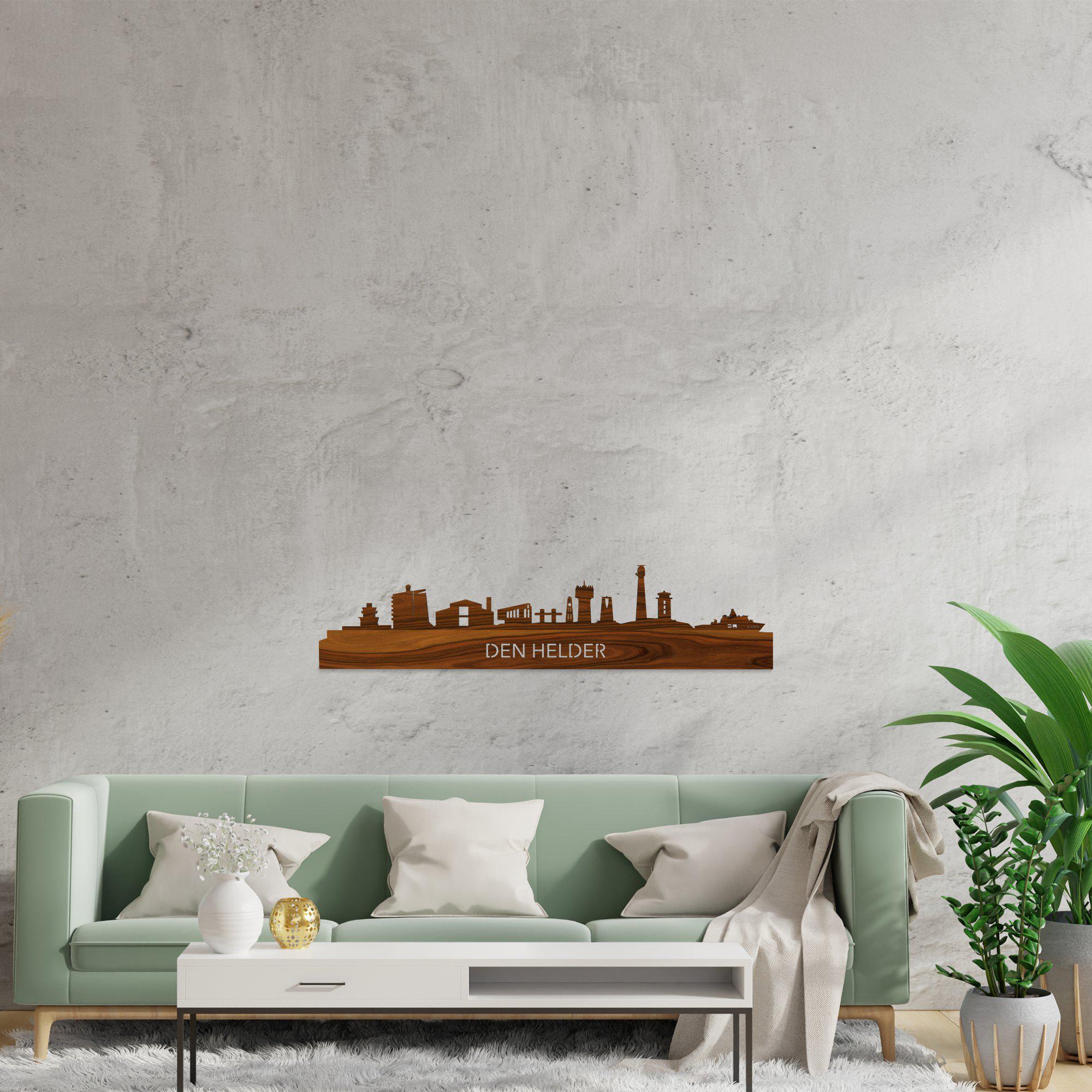 De skyline van Den Helder is verkrijgbaar in verschillende soorten hout: eiken, noten, zwart MDF en palissander. De houtsoorten zijn duurzaam, ecologisch en gekeurd. Dat vinden wij belangrijk! Bij het produceren van houten decoraties komen geen schadelijke stoffen vrij, hout gaat langer mee en het is biologisch afbreekbaar. Daarnaast is de houten afwerking bij elke skyline anders. Dat maakt jouw skyline uniek!
