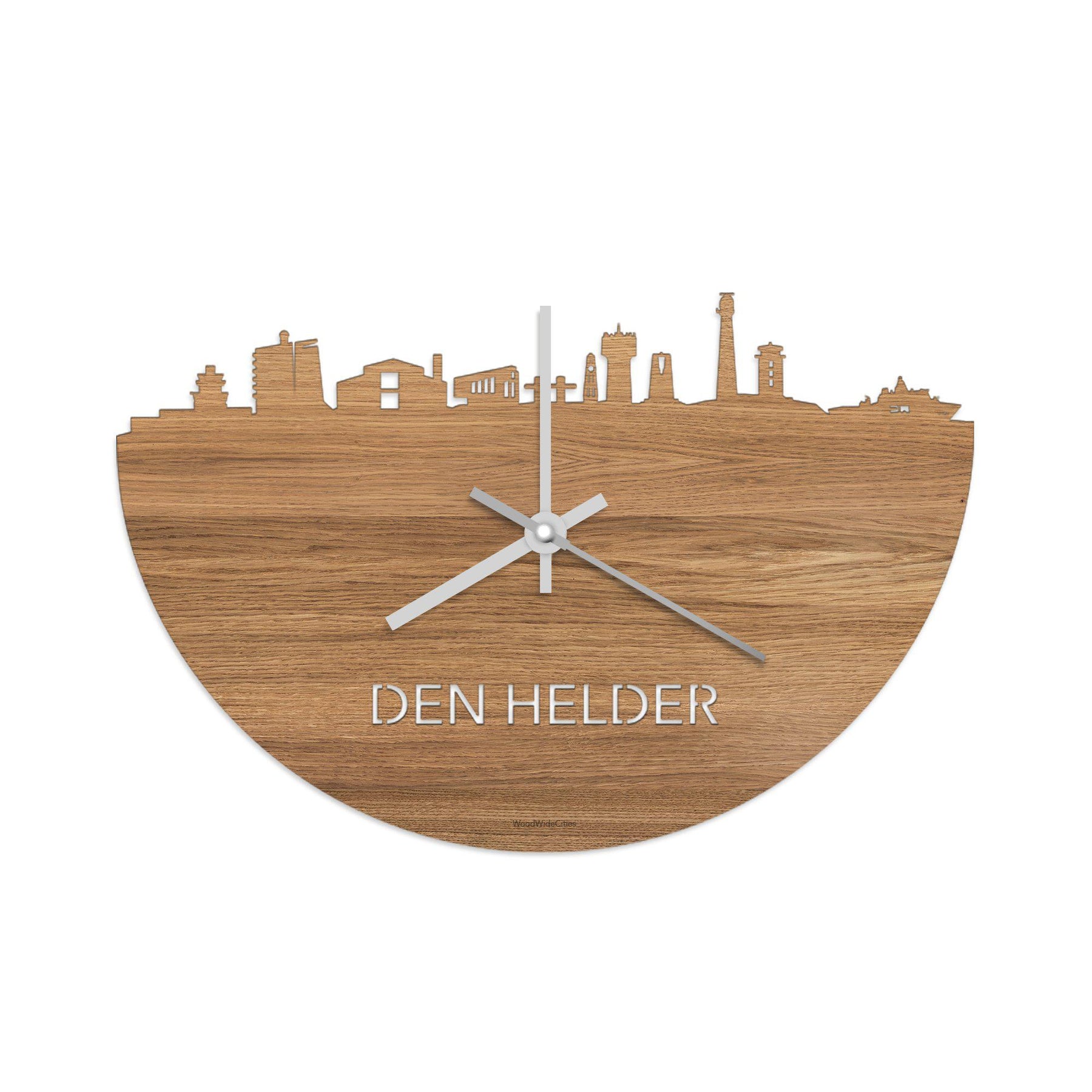 Time flies when you’re having fun! Dat geldt dubbelop als je deze multifunctionele houten wandklok van WoodWideCities in huis haalt. Deze klok met afbeelding van de skyline van Den Helder houdt je bij de tijd, maar neemt je ook mee terug naar de stad waar je bent geboren of waar je hebt gestudeerd. Een mooie herinnering, elke keer als je kijkt hoe laat het is!