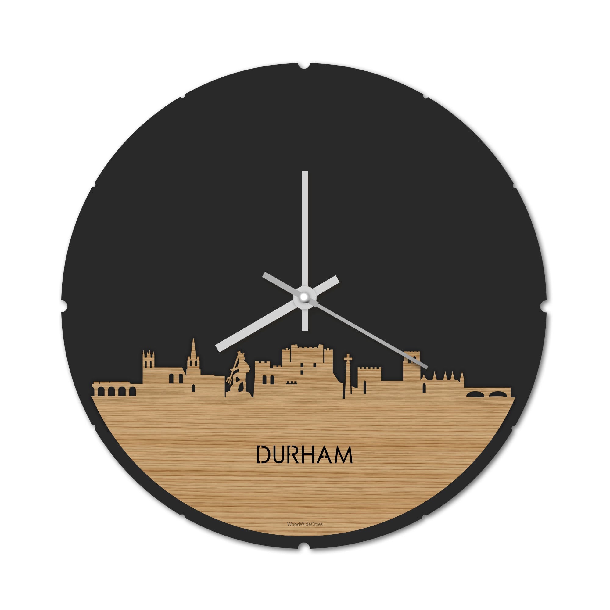 Skyline Klok Rond Durham Bamboe houten cadeau decoratie relatiegeschenk van WoodWideCities