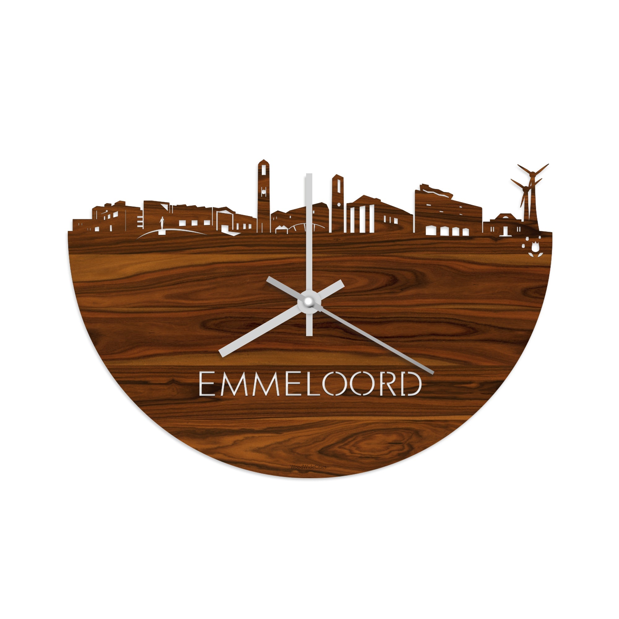 Time flies when you’re having fun! Dat geldt dubbelop als je deze multifunctionele houten wandklok van WoodWideCities in huis haalt. Deze klok met afbeelding van de skyline van Emmeloord houdt je bij de tijd, maar neemt je ook mee terug naar de stad waar je bent geboren of waar je hebt gestudeerd. Een mooie herinnering, elke keer als je kijkt hoe laat het is! Of wat dacht je van een afscheidscadeau, een tijdloos geschenk voor moeder- of vaderdag en andere mijlpalen zoals trouwerijen, het behalen van diploma’s en het openen van een nieuw kantoor of bedrijf, een spetterende binnenkomer voor je kind die gaat studeren in een andere stad of een ideaal cadeau voor de housewarming van kennissen en vrienden.