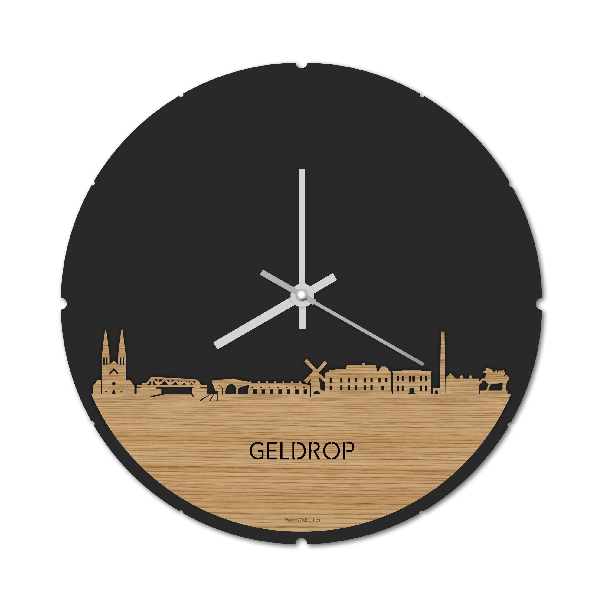 Blijf bij de tijd met de ronde skyline wandklok Dat geldt dubbelop als je deze multifunctionele houten Skyline Klok Rond Geldrop Bamboe in huis haalt. Deze klok met de skyline van Geldrop houdt je bij de tijd, maar neemt je ook mee terug naar de stad waar je bent geboren of waar je hebt gestudeerd. Een mooie herinnering, elke keer als je kijkt hoe laat het is! Of wat dacht je van een afscheidscadeau, een tijdloos geschenk voor moeder- of vaderdag en andere mijlpalen zoals trouwerijen, het behalen van diploma’s en het openen van een nieuw kantoor of bedrijf, een spetterende binnenkomer voor je kind die gaat studeren in een andere stad of een ideaal cadeau voor de housewarming van kennissen en vrienden.