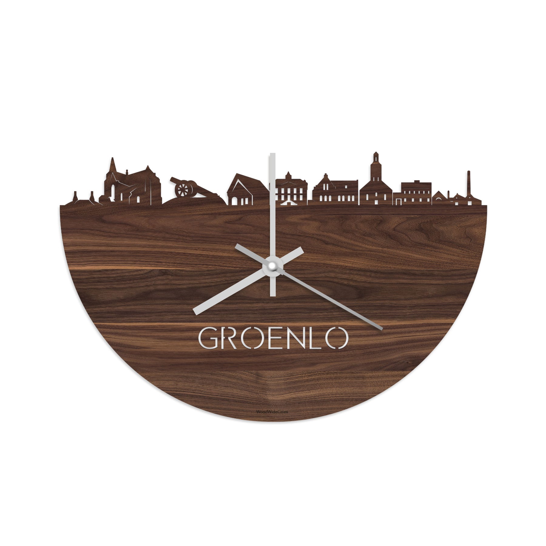 Time flies when you’re having fun! Dat geldt dubbelop als je deze multifunctionele houten Skyline Klok Groenlo Noten in huis haalt. Deze klok met de skyline van Groenlo houdt je bij de tijd, maar neemt je ook mee terug naar de stad waar je bent geboren of waar je hebt gestudeerd. Een mooie herinnering, elke keer als je kijkt hoe laat het is! Of wat dacht je van een afscheidscadeau, een tijdloos geschenk voor moeder- of vaderdag en andere mijlpalen zoals trouwerijen, het behalen van diploma’s en het openen van een nieuw kantoor of bedrijf, een spetterende binnenkomer voor je kind die gaat studeren in een andere stad of een ideaal cadeau voor de housewarming van kennissen en vrienden.