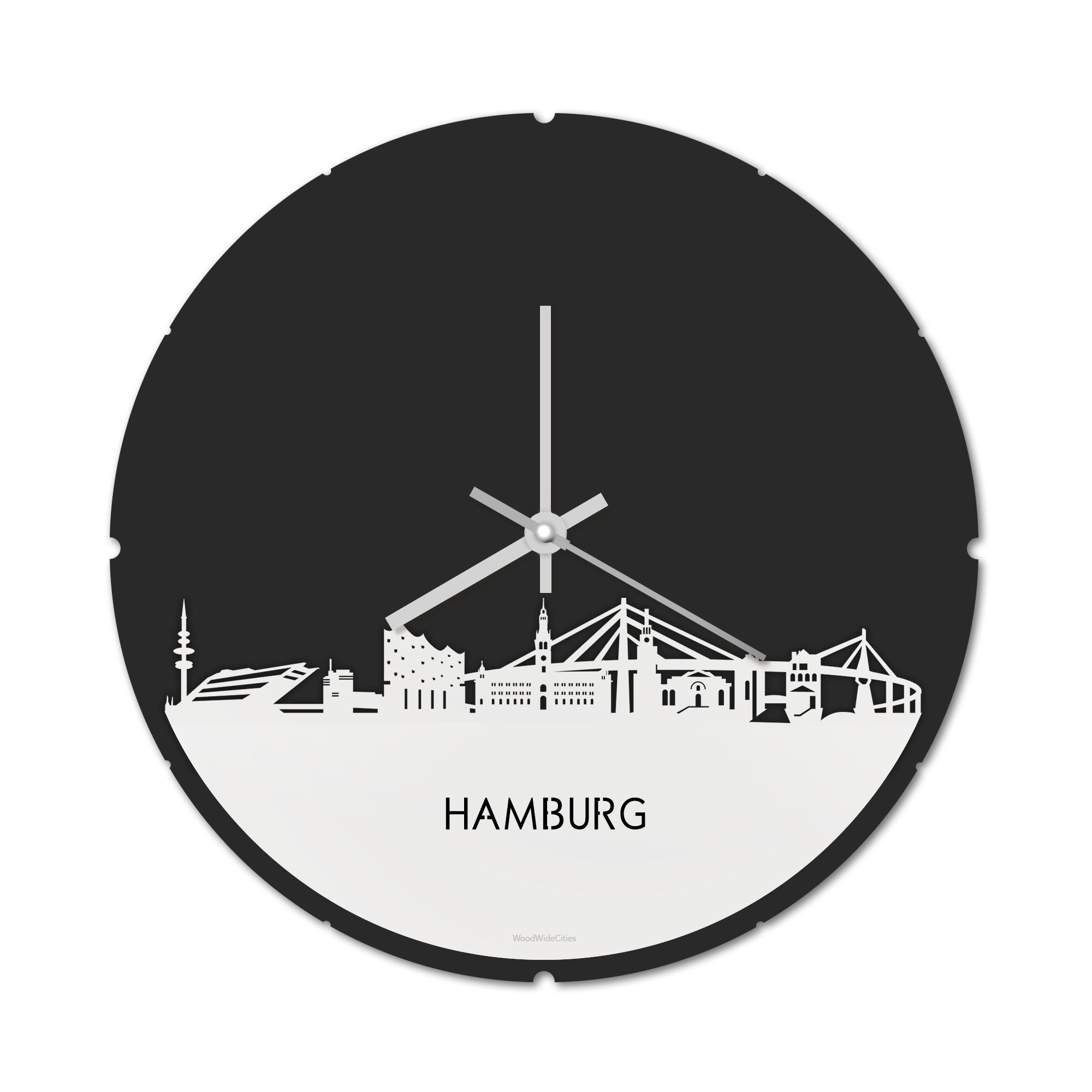 Skyline Klok Rond Hamburg Wit Glanzend houten cadeau decoratie relatiegeschenk van WoodWideCities