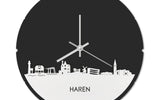 Dat geldt zeker als je de Skyline Klok Rond Haren Eiken in huis haalt. Deze klok met de skyline van Haren houdt je bij de tijd, maar neemt je ook mee terug naar de stad waar je bent geboren of waar je hebt gestudeerd. Een mooie herinnering, elke keer als je kijkt hoe laat het is! Of wat dacht je van een afscheidscadeau, een tijdloos geschenk voor moeder- of vaderdag en andere mijlpalen zoals trouwerijen, het behalen van diploma’s en het openen van een nieuw kantoor of bedrijf, een spetterende binnenkomer voor je kind die gaat studeren in een andere stad of een ideaal cadeau voor de housewarming van kennissen en vrienden.