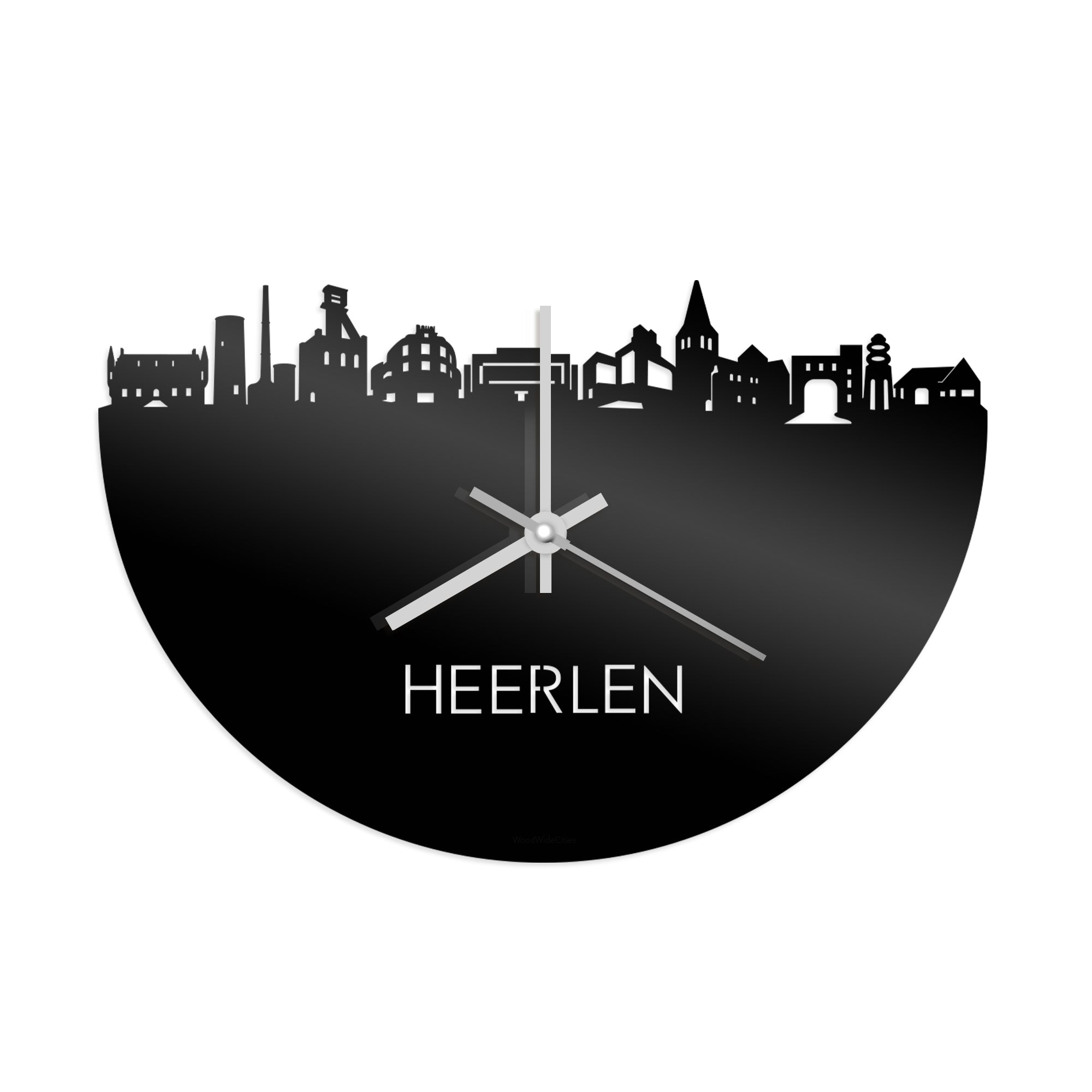 Skyline Klok Heerlen Zwart glanzend gerecycled kunststof cadeau wanddecoratie relatiegeschenk van WoodWideCities