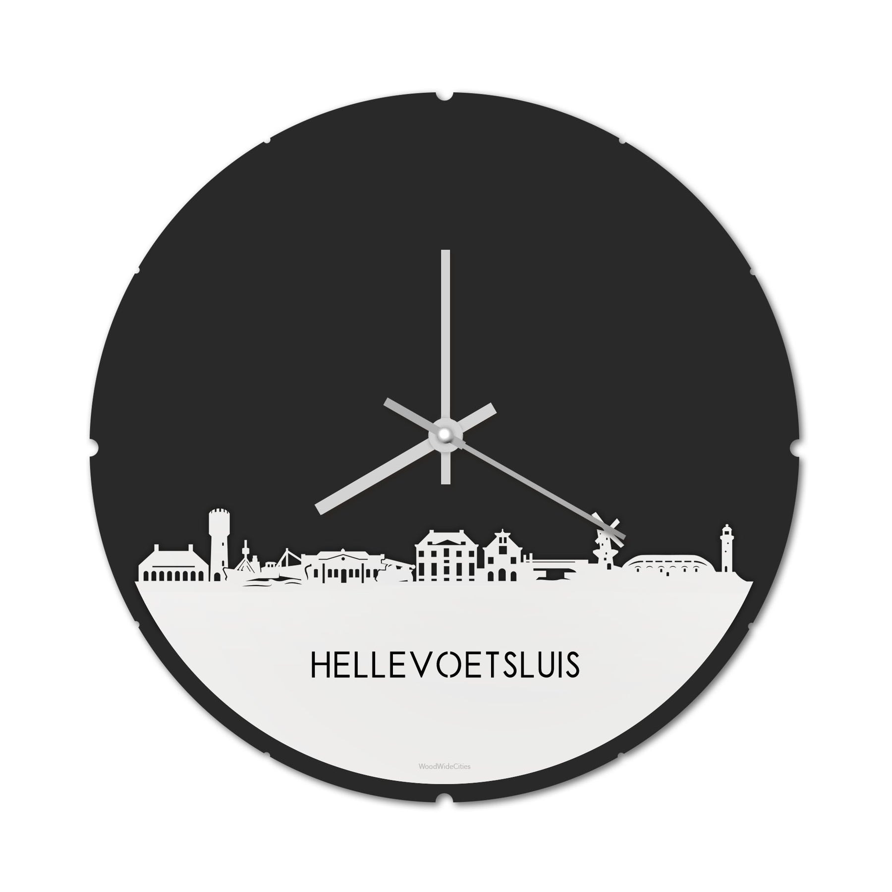 Skyline Klok Rond Hellevoetsluis Wit glanzend gerecycled kunststof cadeau decoratie relatiegeschenk van WoodWideCities
