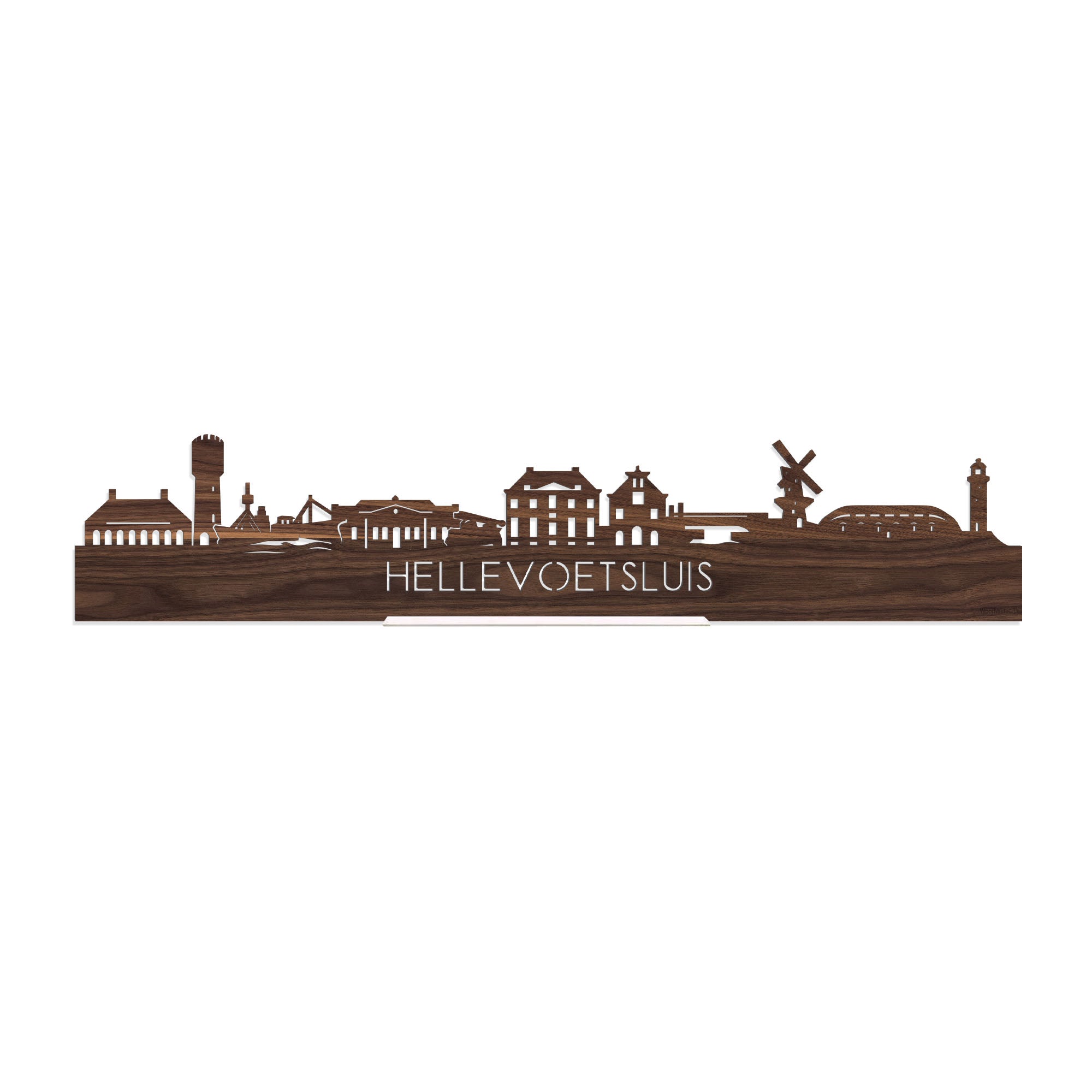 Standing Skyline Hellevoetsluis Noten houten cadeau decoratie relatiegeschenk van WoodWideCities