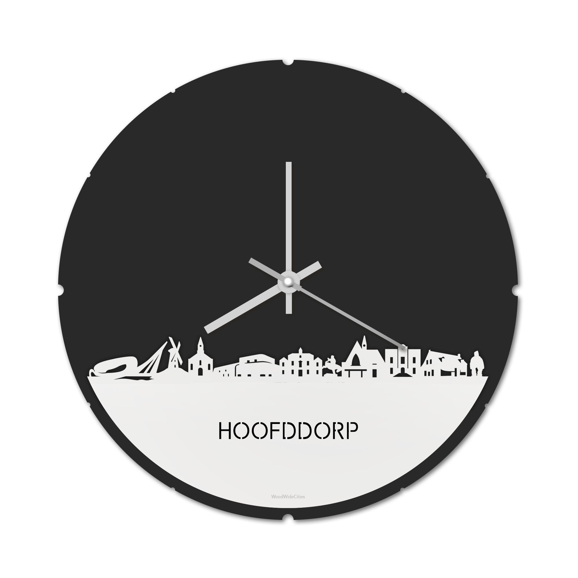 Skyline Klok Rond Hoofddorp Wit Glanzend houten cadeau decoratie relatiegeschenk van WoodWideCities