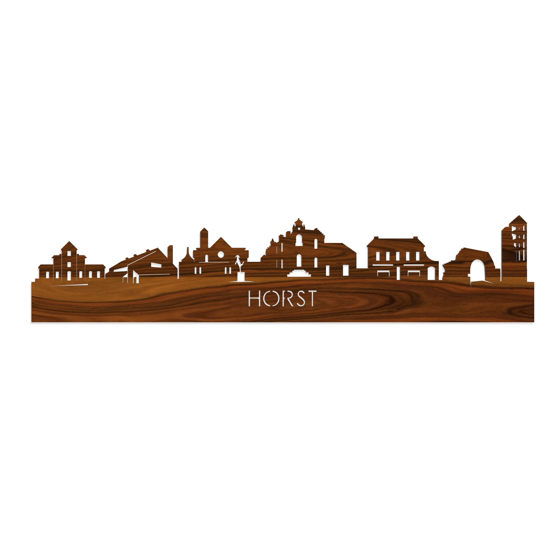 Je herkent ze vast allemaal; de hoogtepunten van deze geliefde plaats: Station Horst/Sevenum, Merthal, Sint-Lambertus kerk, Hundje van Hôrs, Oude Gemeente Huis, Bierlokaal Smaek, Ooude Poort Bij Kasteel Ruïne, Kasteel ruïne. De skyline is gemaakt in samenwerking met inwoners uit Horst en het silhouet komt uit het creatieve brein van onze eigen kunstenares. Met liefde gemaakt!