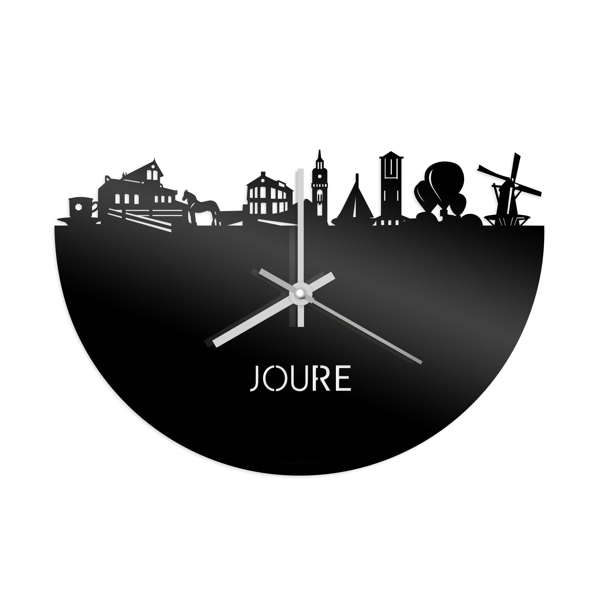 Skyline Klok Joure Zwart glanzend gerecycled kunststof cadeau wanddecoratie relatiegeschenk van WoodWideCities