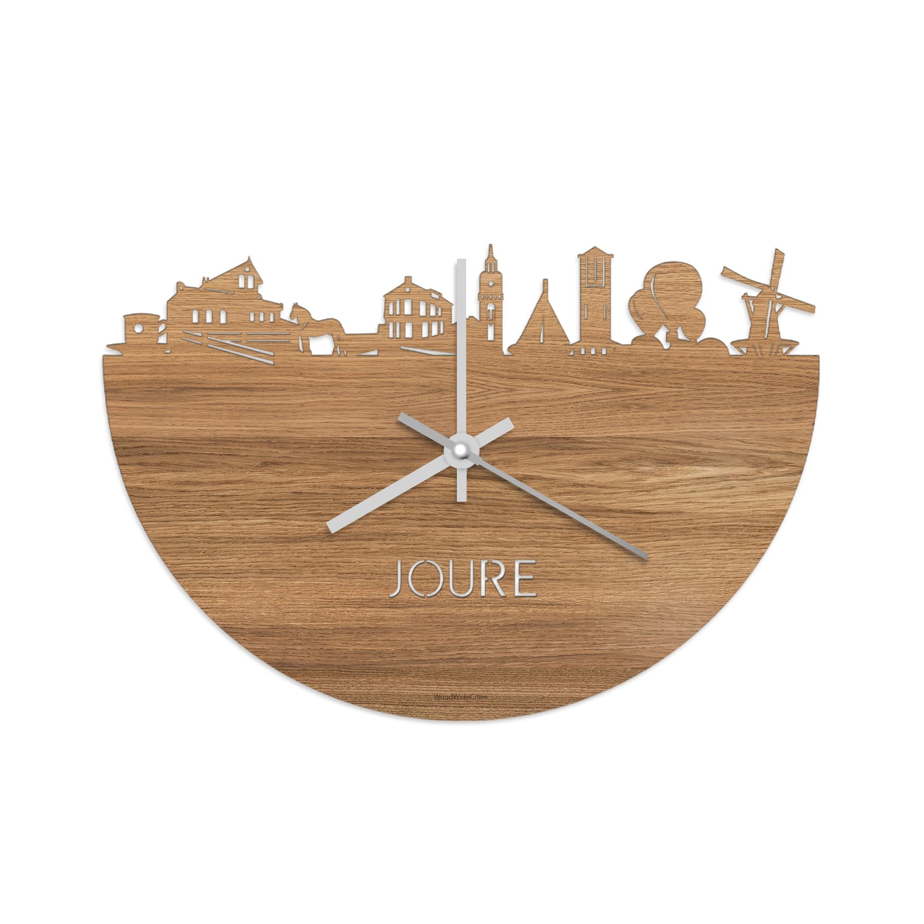 Time flies when you’re having fun! Dat geldt dubbelop als je deze multifunctionele houten wandklok van WoodWideCities in huis haalt. Deze klok met afbeelding van de skyline van Joure houdt je bij de tijd, maar neemt je ook mee terug naar de stad waar je bent geboren of waar je hebt gestudeerd. Een mooie herinnering, elke keer als je kijkt hoe laat het is! Of wat dacht je van een afscheidscadeau, een tijdloos geschenk voor moeder- of vaderdag en andere mijlpalen zoals trouwerijen, het behalen van diploma’s en het openen van een nieuw kantoor of bedrijf, een spetterende binnenkomer voor je kind die gaat studeren in een andere stad of een ideaal cadeau voor de housewarming van kennissen en vrienden.