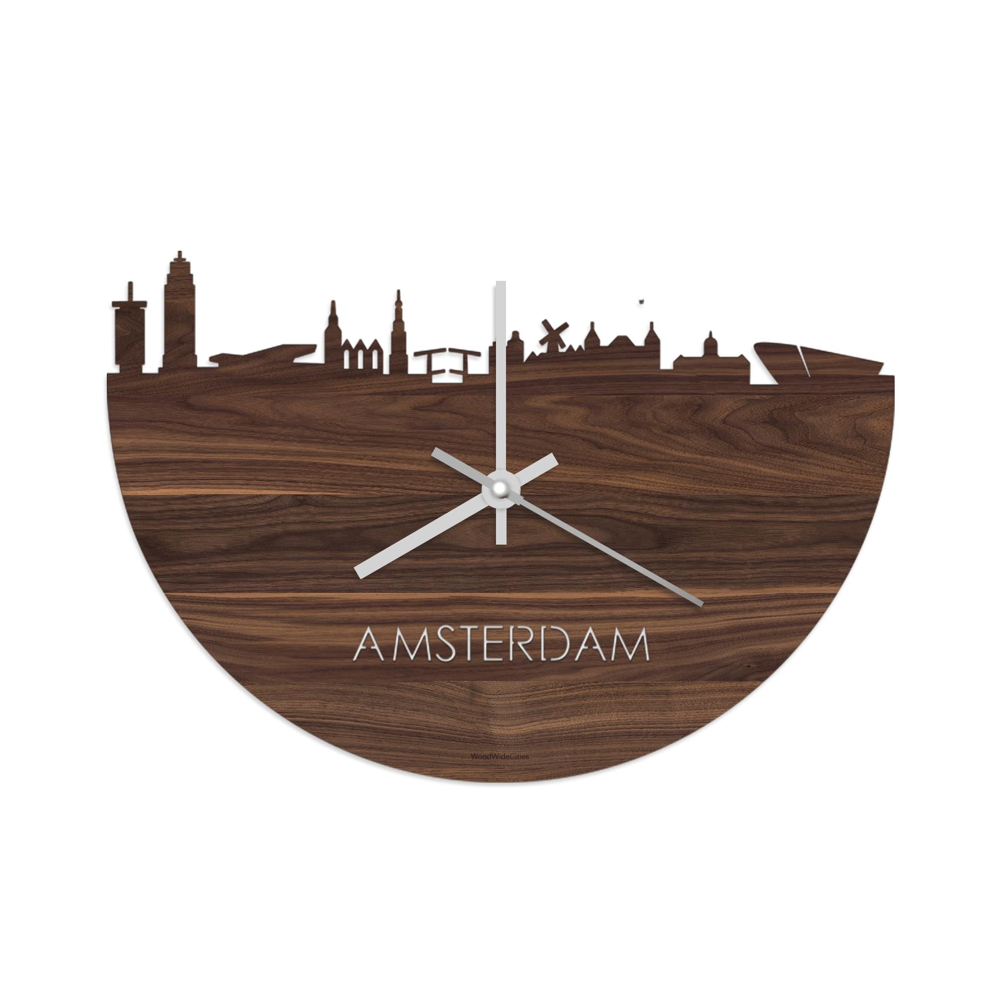 Skyline Klok Amsterdam Noten Noten houten cadeau wanddecoratie relatiegeschenk van WoodWideCities