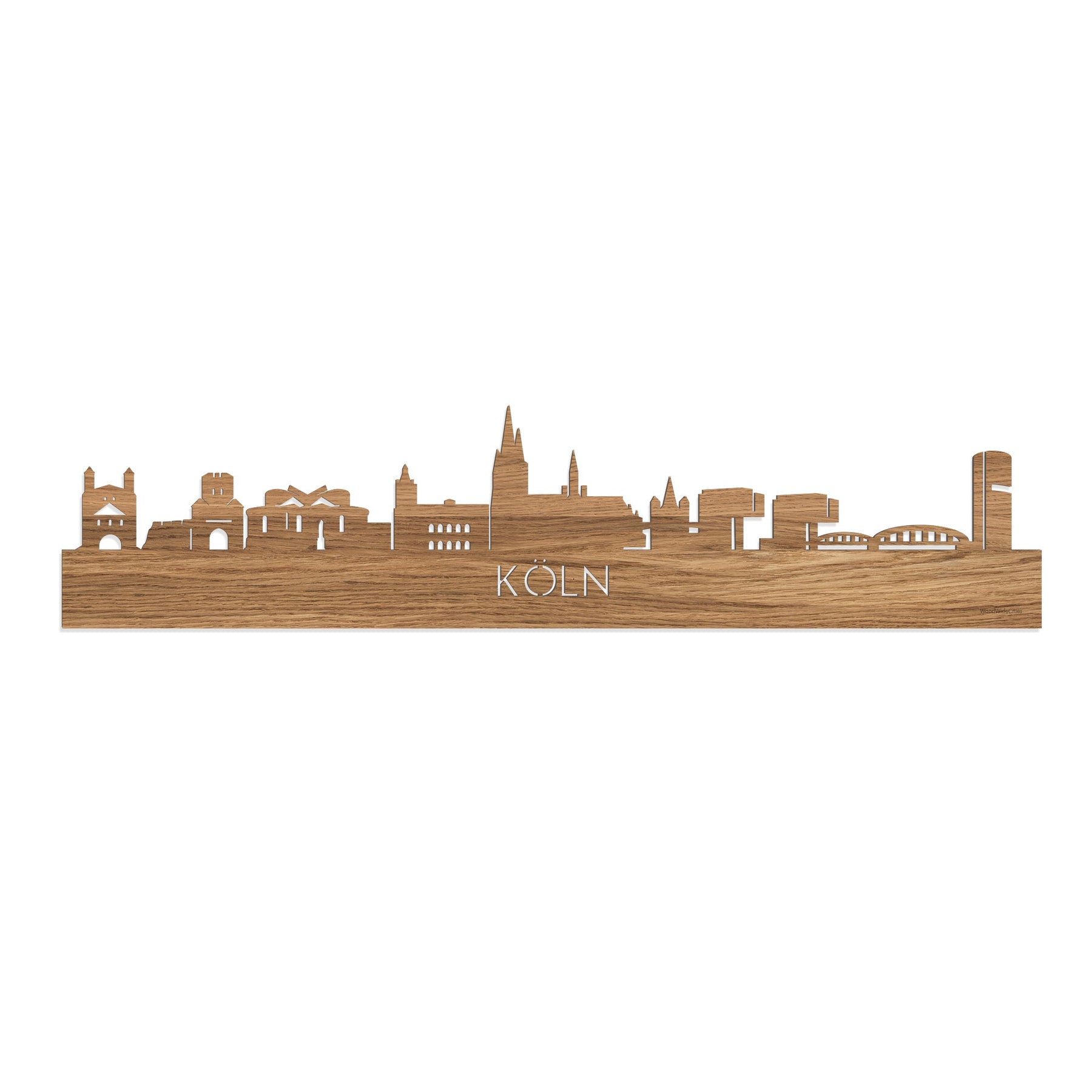 De skyline van Köln is verkrijgbaar in verschillende soorten hout: zwart MDF, bamboe, eiken, noten en palissander. De houtsoorten zijn duurzaam, ecologisch en gekeurd.
