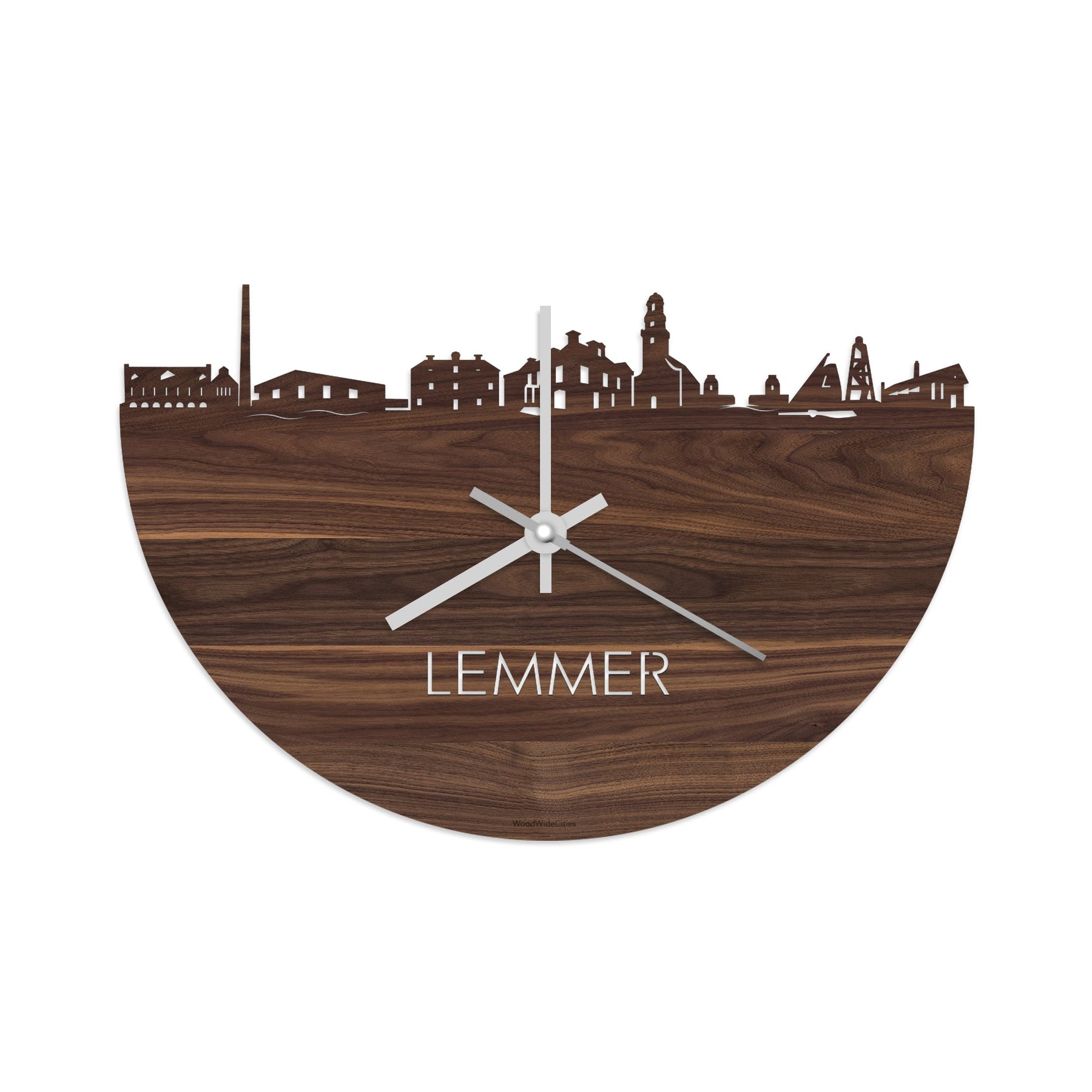 Skyline Klok Lemmer Noten houten cadeau wanddecoratie relatiegeschenk van WoodWideCities