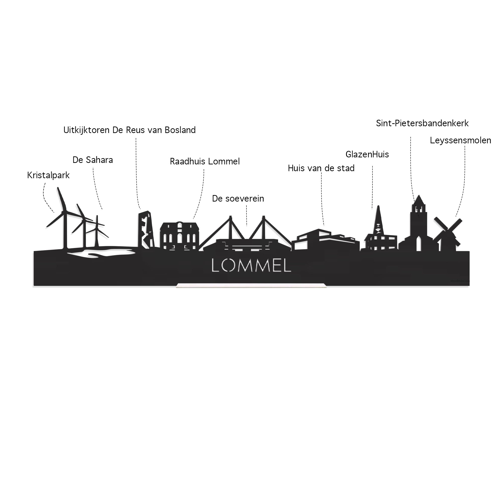 Je herkent ze vast allemaal; de hoogtepunten van deze geliefde plaats: Kristalpark, De Sahara, Uitkijktoren De Reus van Bosland, De soeverein, Huis van de stad Lommel, GlazenHuis, Sint-Pietersbandenkerk, Leyssensmolen. De skyline is gemaakt in samenwerking met inwoners uit Lommel en het silhouet komt uit het creatieve brein van onze eigen kunstenares. Met liefde gemaakt!
