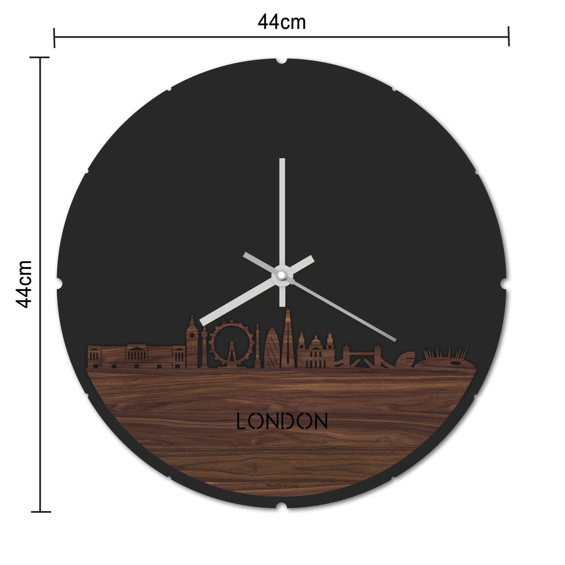 Skyline Klok Rond London Goud Metallic houten cadeau decoratie relatiegeschenk van WoodWideCities