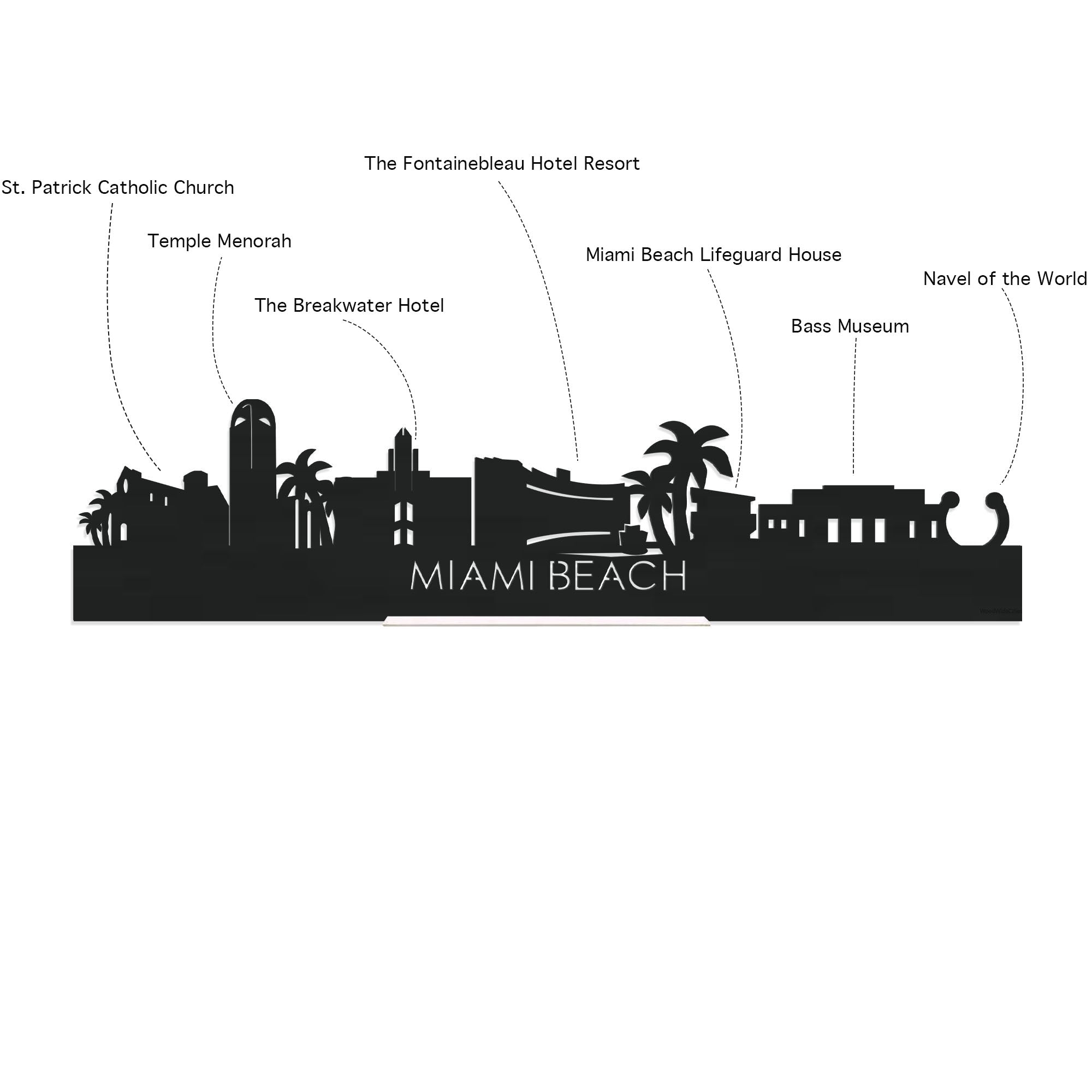 Je herkent ze vast allemaal; de hoogtepunten van deze geliefde plaats: St. Patrick Catholic Church, Temple Menorah, The Breakwater Hotel, The Fontainebleau Hotel Resort, Miami Beach Lifeguard House, Bass Museum, Navel of the World . De skyline is gemaakt in samenwerking met inwoners uit Miami Beach en het silhouet komt uit het creatieve brein van onze eigen kunstenares. Met liefde gemaakt!