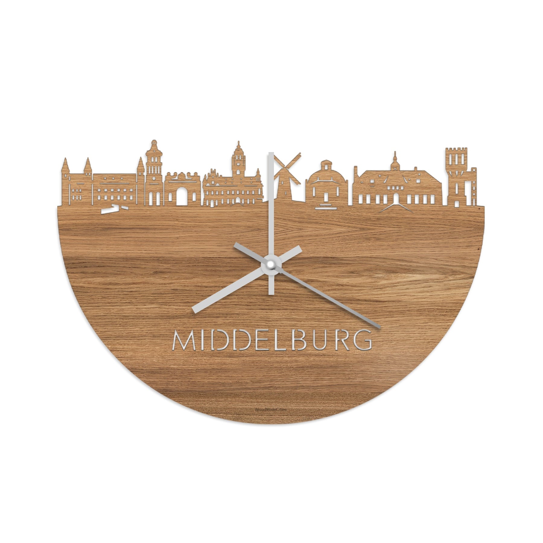 Time flies when you’re having fun! Dat geldt dubbelop als je deze multifunctionele houten wandklok van WoodWideCities in huis haalt. Deze klok met afbeelding van de skyline van Middelburg houdt je bij de tijd, maar neemt je ook mee terug naar de stad waar je bent geboren of waar je hebt gestudeerd. Een mooie herinnering, elke keer als je kijkt hoe laat het is! Of wat dacht je van een afscheidscadeau, een tijdloos geschenk voor moeder- of vaderdag en andere mijlpalen zoals trouwerijen, het behalen van diploma’s en het openen van een nieuw kantoor of bedrijf, een spetterende binnenkomer voor je kind die gaat studeren in een andere stad of een ideaal cadeau voor de housewarming van kennissen en vrienden.