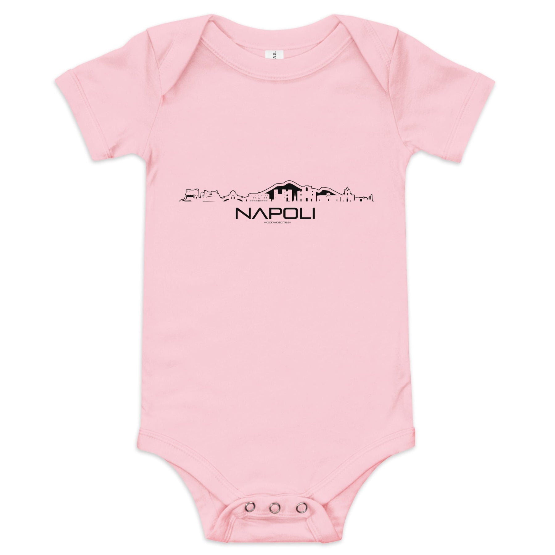 Het baby rompertje van 100% katoen met de skyline van Napoli is super cool voor elke baby. Het heeft drie drukknopen bij de pijp om gemakkelijk te kunnen verschonen, een comfortabele enveloppe hals en een mooie print die de baby helemaal gelukkig maakt.