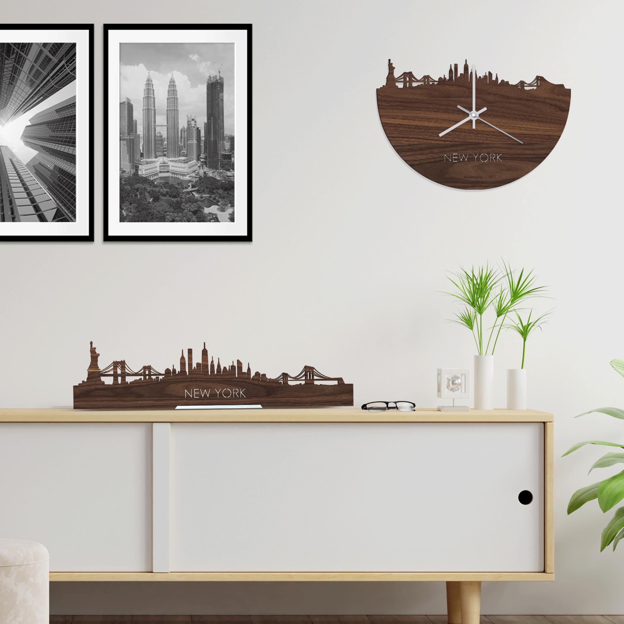 Skyline Klok New York Noten Noten houten cadeau decoratie relatiegeschenk van WoodWideCities