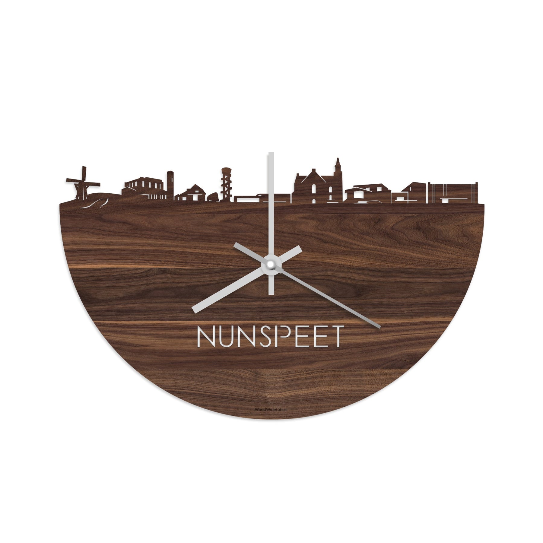 Skyline Klok Nunspeet Noten houten cadeau decoratie relatiegeschenk van WoodWideCities