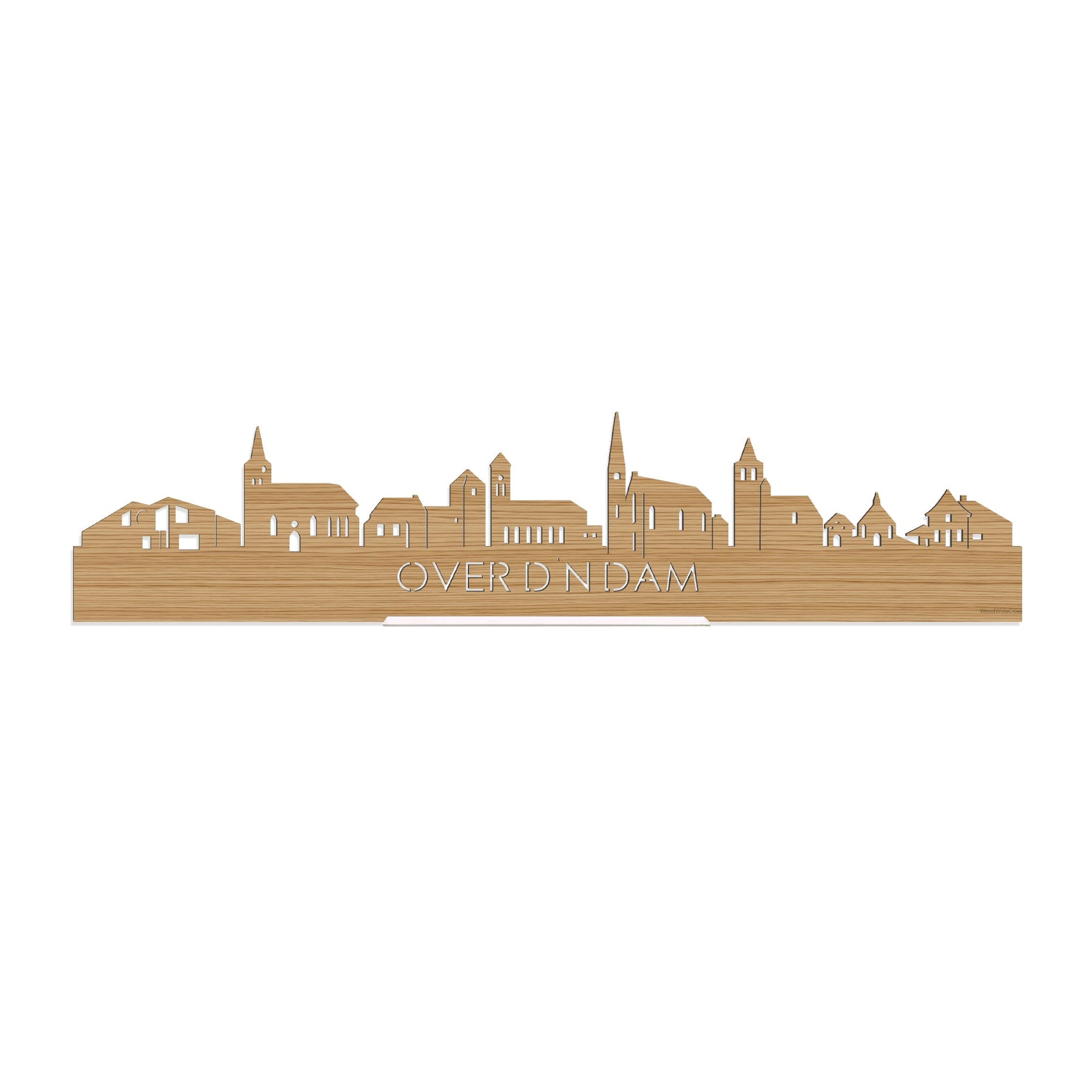 De skyline van Over d'n Dam is verkrijgbaar in verschillende soorten hout: zwart MDF, eiken, bamboe, noten en palissander. De houtsoorten zijn duurzaam, ecologisch en gekeurd. Dat vinden wij belangrijk! Bij het produceren van houten decoraties komen geen schadelijke stoffen vrij, hout gaat langer mee en het is biologisch afbreekbaar. Daarnaast is de houten afwerking bij elke skyline anders. Dat maakt jouw skyline uniek!